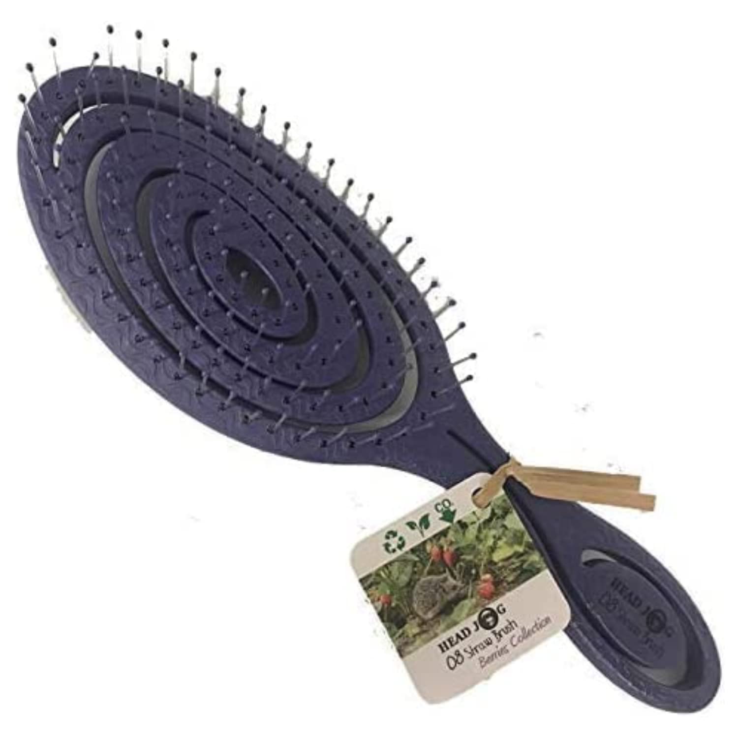 Environmentally friendly natural hair brushes made from bio-material in colours Blueberry, Raspberry, Gooseberry and Blackberry. Bio-material is a kind of polymer material which is obtained from renewable biomass such as straw, rice husk and plastic, then it is polymerized. During production the increment of carbon emission is zero therefore reducing C02 emission. The Straw Brush massages the scalp and is kinder the hair; The loop design provides flexibility and is gentle on the scalp, The double curve creates an ergonomic design that fits perfectly to the scalp, Flexible soft pin bristles massage your scalp and have high resilience, The bristles are kinder to the hair with less breakage and can be used as a detangling brush for wet or dry hair.
