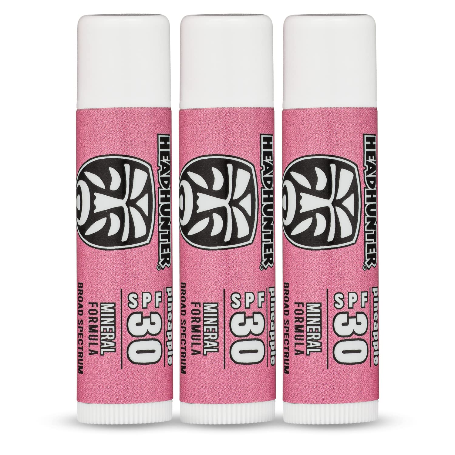 Lean back in your beach chair, paddle out with confidence, and carve the slopes up with our pineapple lip balm sunscreen with broad spectrum SPF 30 solar protection! No matter the season, you've got a sunscreen chapstick you can rely on. Made responsibly with our oceans in mind, Headhunter sunscreen infused chapstick is reef safe and chemical free. Keep your lips hydrated all day long with our zinc oxide sunblock for your lips. Safe for men, women, and children, we implore you to always keep a tube in your back pocket, your car, or your bag. "But what if I leave it in my car overnight and it melts or freezes?"Headhunter sunscreen chapstick covers every nook and cranny of your lips and is water and sweat resistant; not to mention the sweet pineapple flavor! Sunburn tends to creep up on us while we’re out having fun in the sun or snow, but it doesn't have to be that way. Get ahead of the sun's harmful UVA/UVB rays and rely on our natural pineapple lip balm to keep your lips fresh, clean, and hydrated.