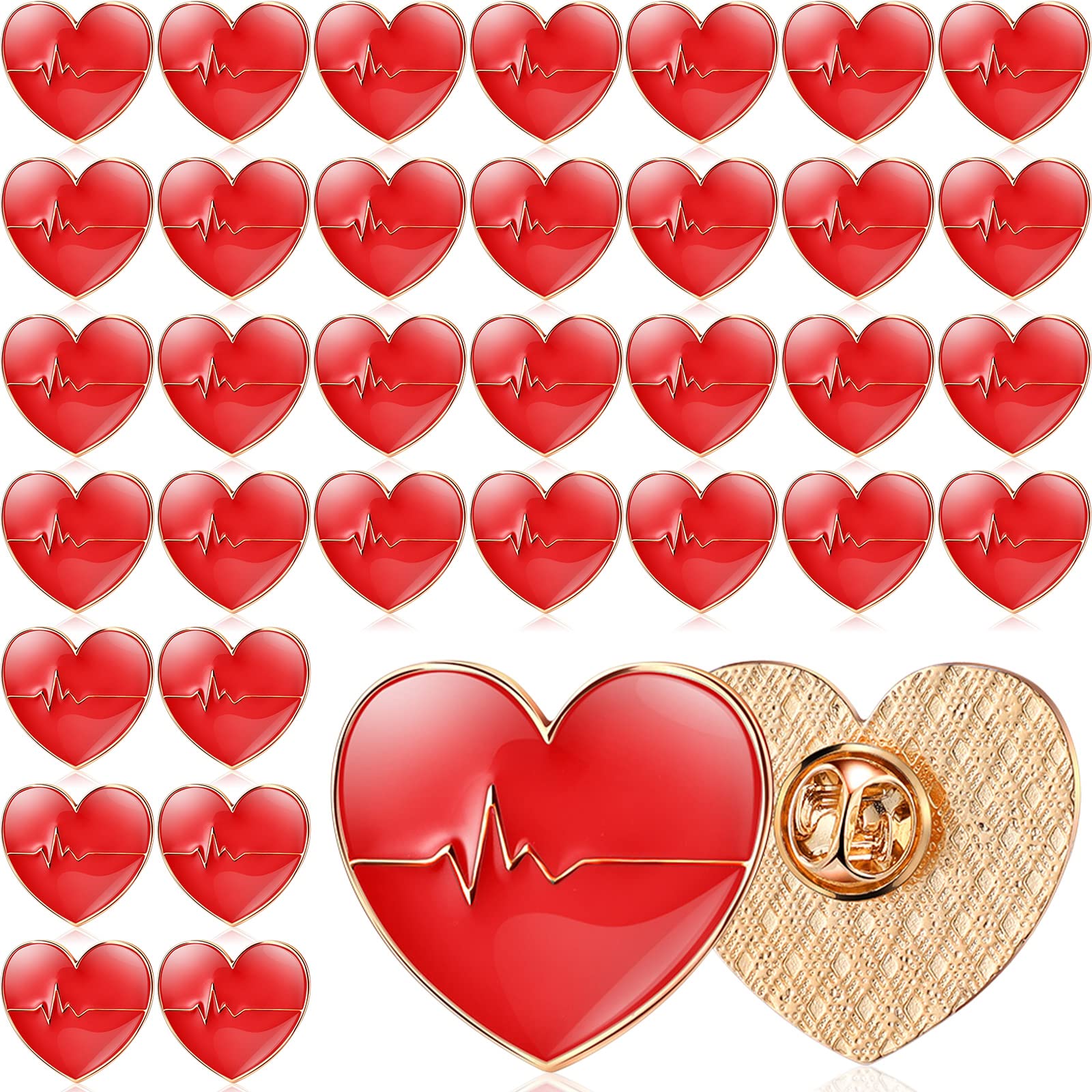 Heart Pins Bulk Heart Disease Nurse Pins Lapel Brooches Pin Medical Pin for Heart Month Medical Assistant Week (30 Pcs)