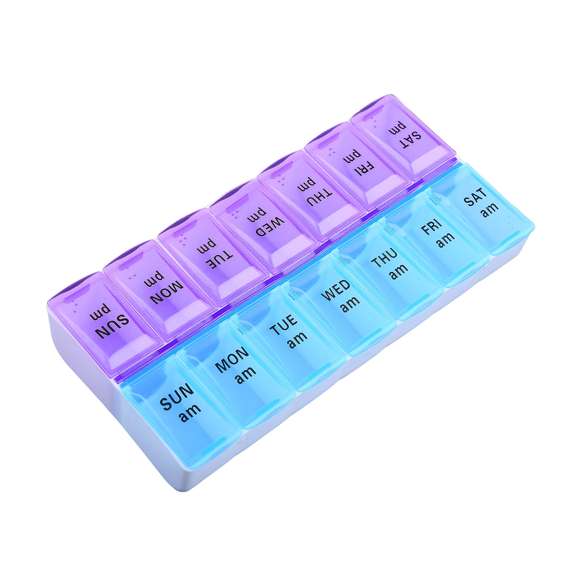 DescriptionProduct DescriptionThis Optimum Sized Reminder Pillbox Helps Organising Your Daily Medications For The Whole Week Into Morning Evening Slots. This Is Especially Useful While Travelling Where Routines Are Often Disturbed. Even As A Daily Routine, It Is Convenient To Refill The Box Once A Week For Easy Doze Administration. The Pill Reminders One-Touch Feature Lifts The Lid Of The Pill Box With A Snap Lid For Easy Access. Ideal To Use Daily At School And Work. Easily Stores In Pocket Or Purse. A Way To Get Organised Without The Hassle Of Opening Several Different Bottles Every Time Your Need To Take Your Vitamins And Medication. Simply Full Once A Week And All Of Your Medication And Vitamins Will Be In One Handy Location.Directions[INFERRED] Open the appropriate compartment for the current time, place pills, close the compartment, repeat for other time slots, and carry or store the dispenser.