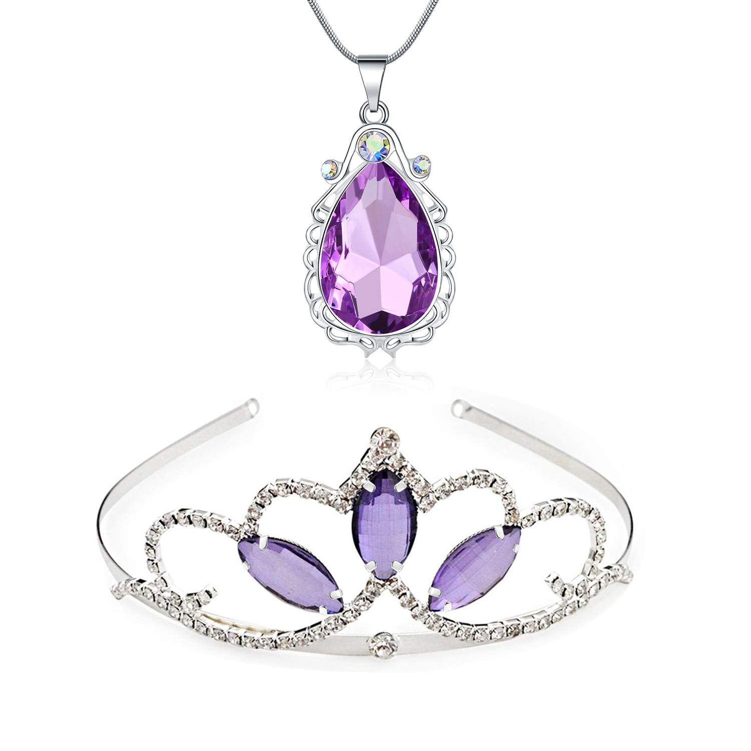 hengkaixuan Princess Costume Sofia Tiara and Magic Amulet Waterdrop Pendant Necklace Set for Girls Birthday/Christmas