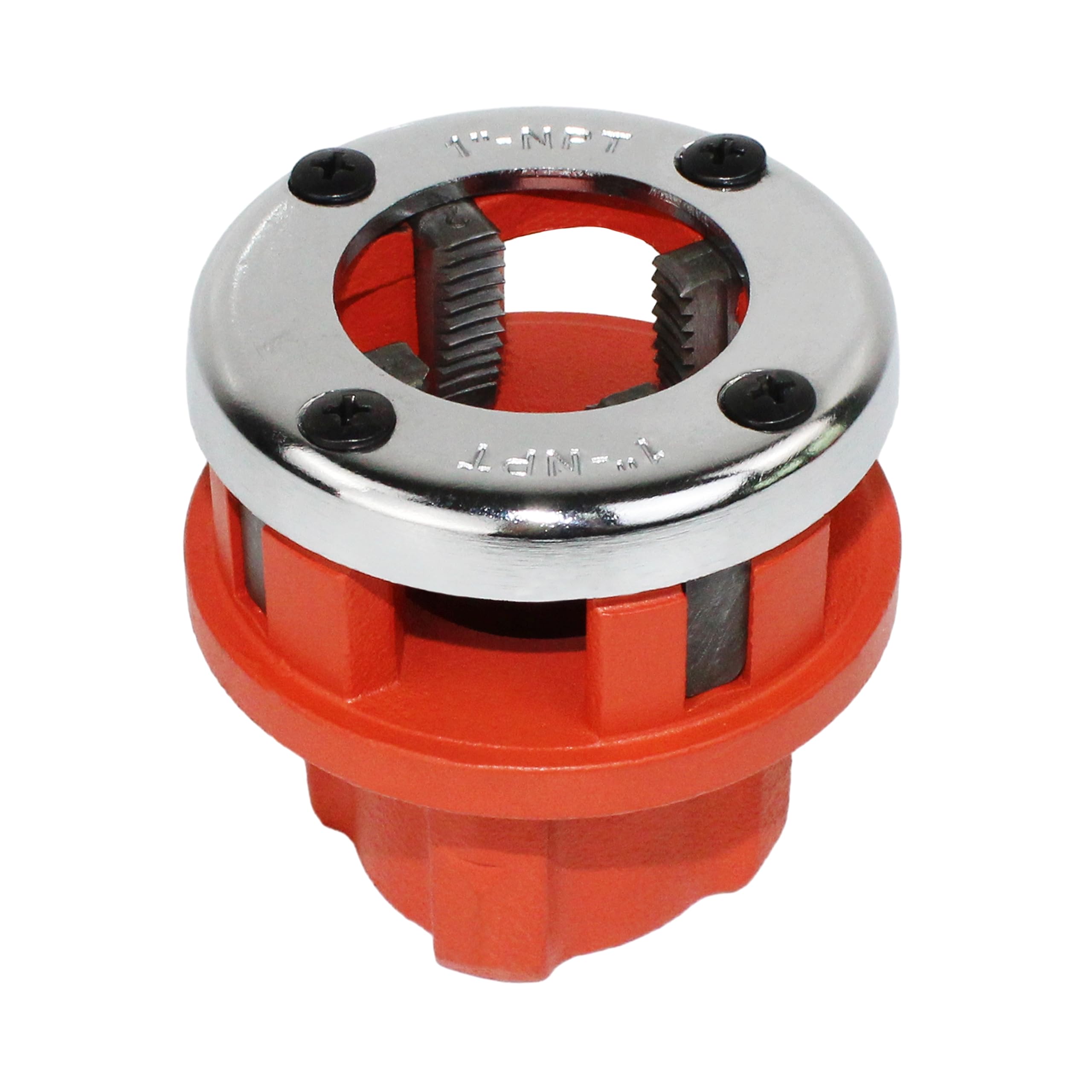 [Size]: 1 pc 1-inch (25.4 mm) hinge plate head/dies [Replacement Parts for Ratchet Pipe Threader Kit]: The product sells separately which is a good replacement for all kinds of ratchet pipe thread kit, especially for HFS serials products. [Durable and Sturdy]: Perfect tool for construction, pipeline and equipment installation industries to ensure project quality, accelerate work efficiency and reduce labor intensity. Its head is made of malleable cast iron, which is durable and wearproof for long time use. [Application]: With this ratchet threader set, you can easily put a clean thread on your pipes, simplify the threading work of galvanized pipe and iron pipe. It cannot be used for threading stainless steel pipe. [Package]: The product is packed with carton box which can keep the tools organized, safe storage and easy to transport.