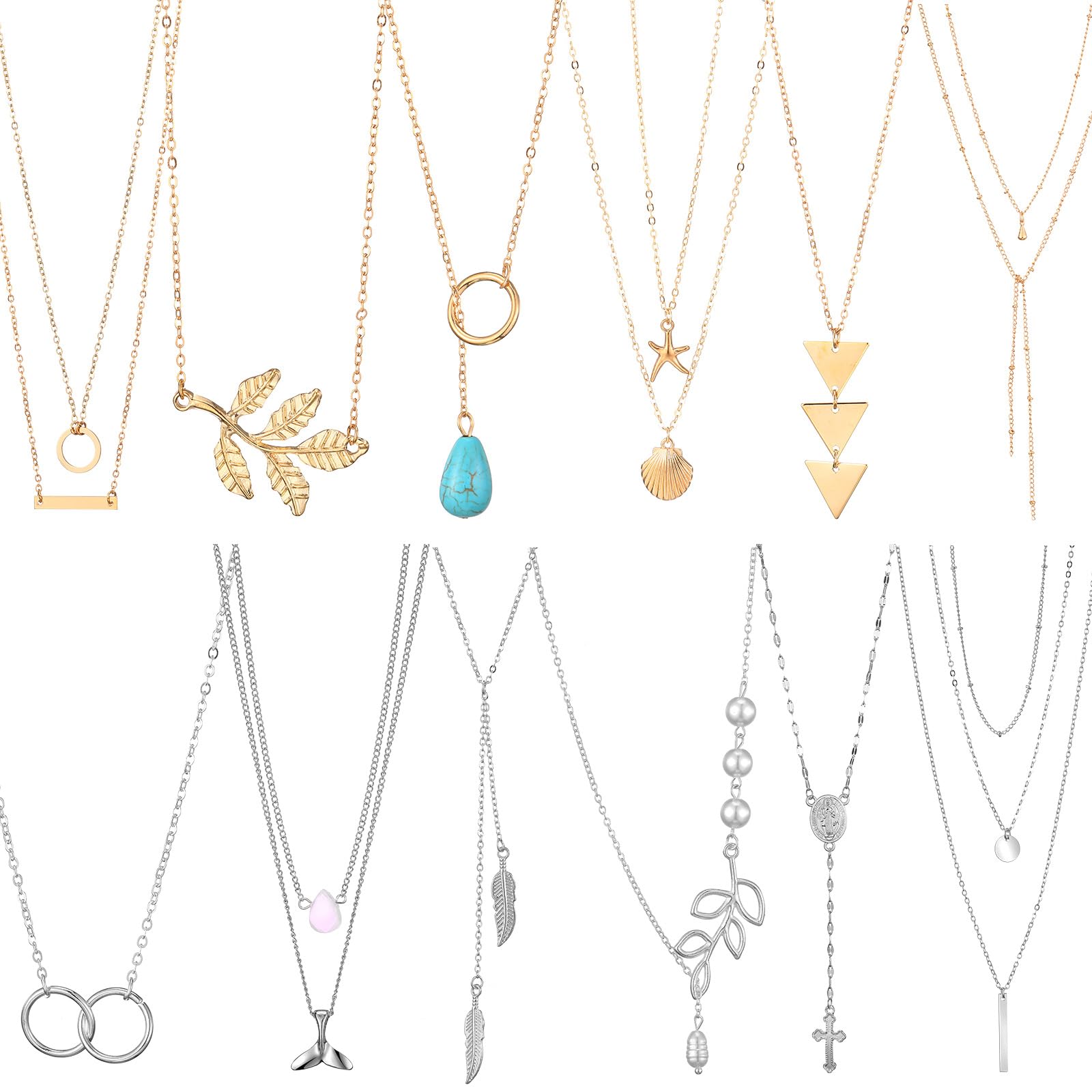 Hicarer 12 Pieces Long Pendant Necklace Set Y Tassel Leaf Circle Bar Necklace for Women (Chic Style)