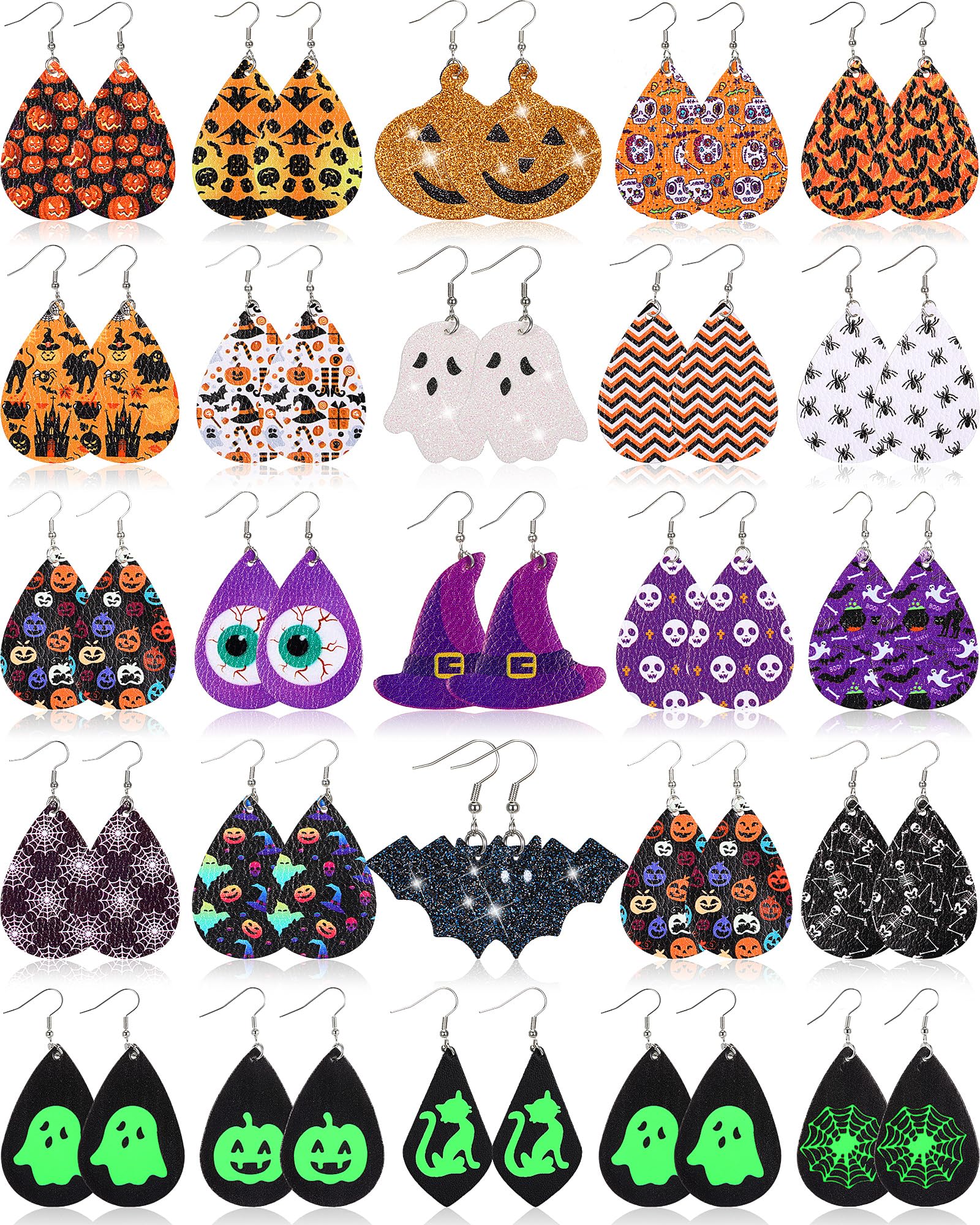 Hicarer 25 Pairs Halloween Faux Leather Earrings Teardrop Drop Dangle Earrings Jewelry Gift for Women Costume Party Decoration Supplies