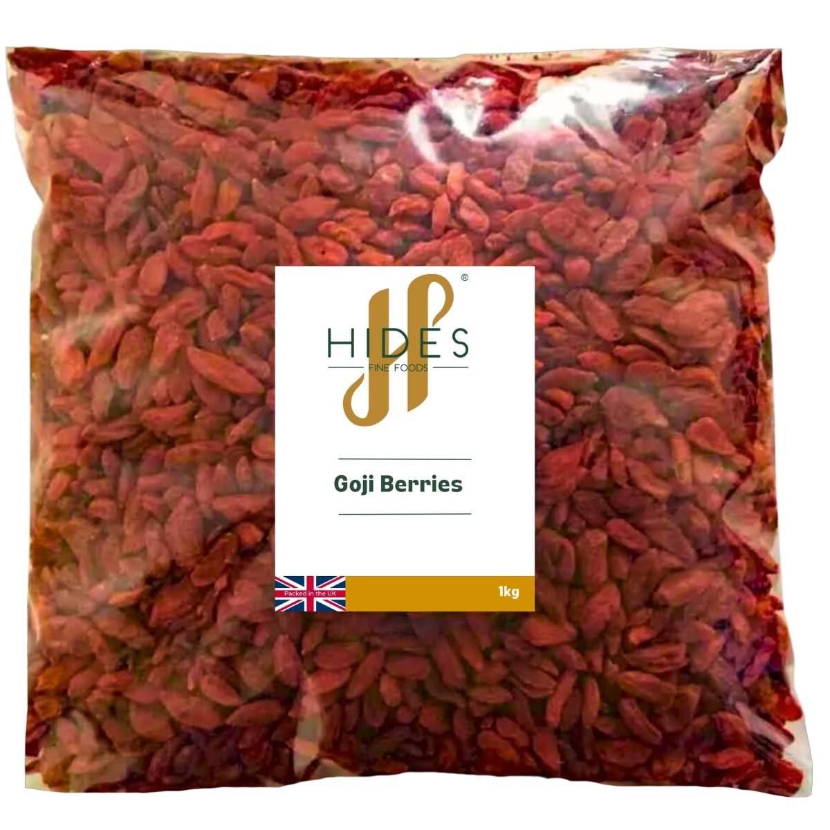 Hides Fine Foods - Goji Berries 1kg - Suitable for Vegetarians - Baking - Granola - Breakfast - Snacking - Desserts Excellent for snacking on, our Goji Berries are perfect to take to work or school as a sweet but nutritious snack. Goji Berries are high in antioxidants and are a good source of Vitamin A and C...who knew something could be so tasty and healthy? Our Goji Berries are perfect for making your own trail mix. They also are very tasty in scones and fruit cakes. Our Goji Berries are great in cereals, smoothies or adding to bakes. Working in both sweet and savoury dishes, you will always get a burst of fresh flavour. Minimalistic food-grade packaging, made out of recyclable plastic. Minimum waste, maximum flavour. This family-run business is full of love, packed in the UK to the highest standard.