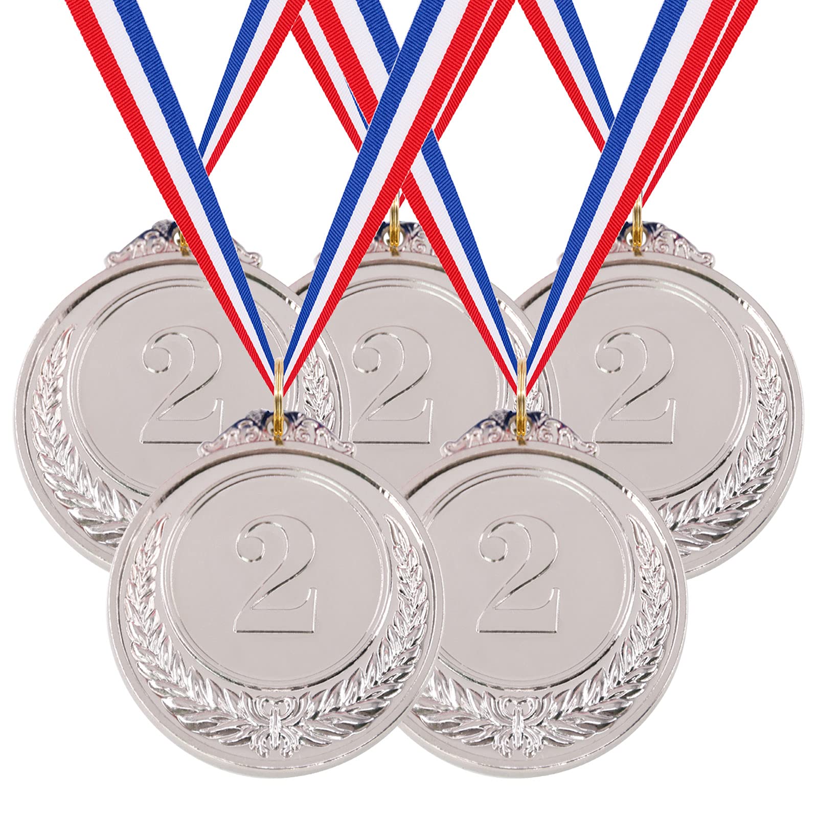 Hilitchi 5Pcs Silver Award Medals - Olympic Style Winner Medals 2nd Place Medals with Ribbon (Silver)