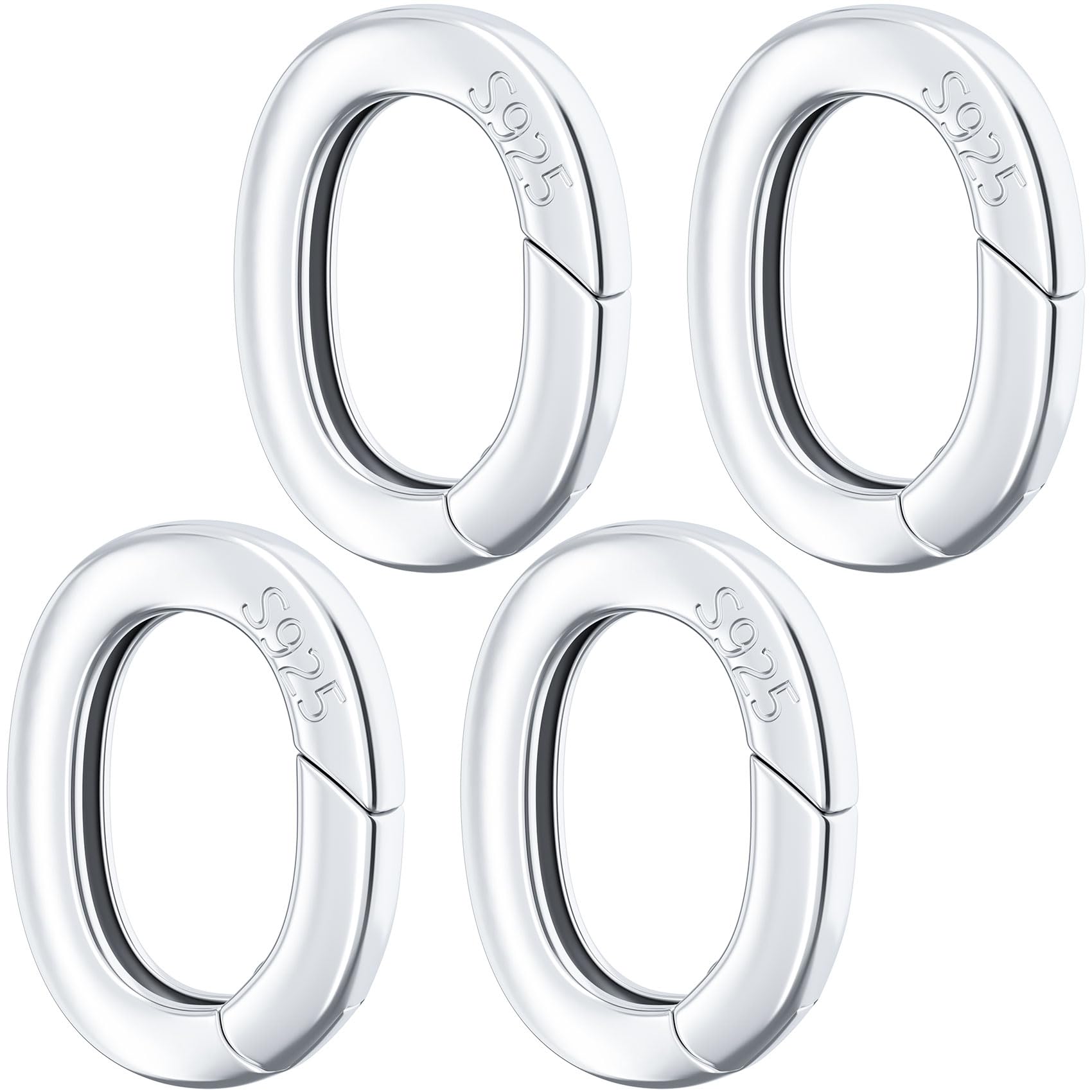 HINZIC 4pcs 925 Sterling Silver Tiny Oval Necklace Shortener Enhancer Carabiner Clasps Wedding Ring Connector Spring Clips for Women Bracelet Jewelry Making