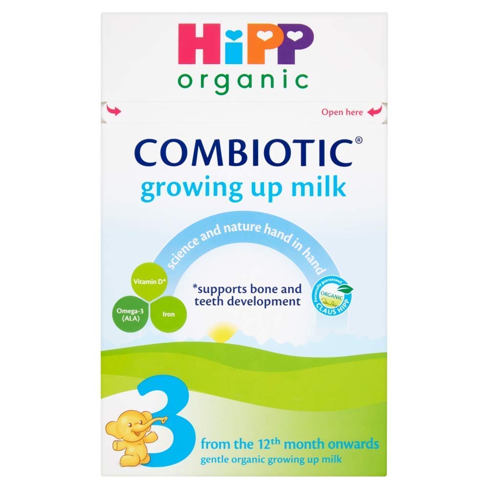 DescriptionProduct DescriptionHiPP Organic Growing Up Milk x4 600g, 600 gramsIngredientsOrganic SKIMMED MILK, Organic LACTOSE, Organic Vegetable Oils (Palm Oil*, Rapeseed Oil, Sunflower Oil), Prebiotic Fibres (Galacto-Oligosaccharides from LACTOSE), Emulsifier SOYA LECITHIN, Calcium Carbonate, Potassium Citrate, Sodium Citrate, Vitamin Mix [Vitamin C, Vitamin E, Niacin, Pantothenic Acid, Vitamin A, Thiamin (Vitamin B1), Vitamin D, Vitamin B6, Folic Acid, Riboflavin (Vitamin B2), Vitamin K, Biotin, Vitamin B12], Magnesium Carbonate, Calcium Orthophosphate, L-Tryptophan, Iron Sulphate, Stabiliser Lactic Acid, Zinc Oxide, L-Cystine, Copper Sulphate, Potassium Iodate, Manganese Sulphate, Sodium Selenate, *From Sustainable Organic ProductionManufacturer Contact InformationHiPP UK Ltd, Hurst Grove, Sandford Lane, Hurst, Reading RG10 0SQ. In EU: HiPP GmbH and Co. Vertrieb KG, D-85273 Pfaffenhofen