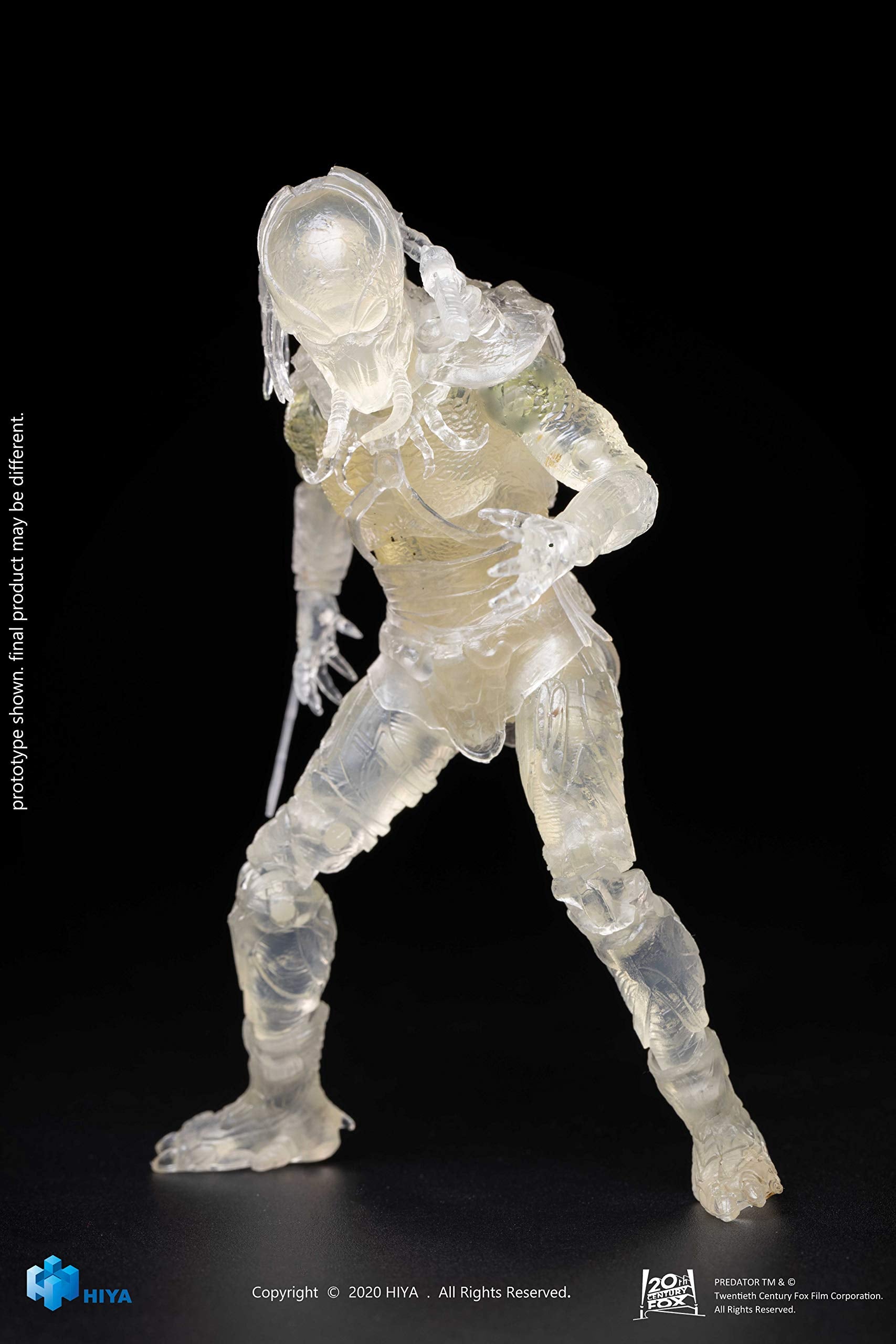 From Hiya Toys. A PREVIEWS Exclusive! Based off the blockbuster film Predators, Hiya Toys presents this 1/18-scale action figure of the Tracker Predator as a translucent figure as though cloaked for the hunt. This figure captures the creature's iconic look with a fully poseable body and detailed paintwork at a 4 1/2" size!