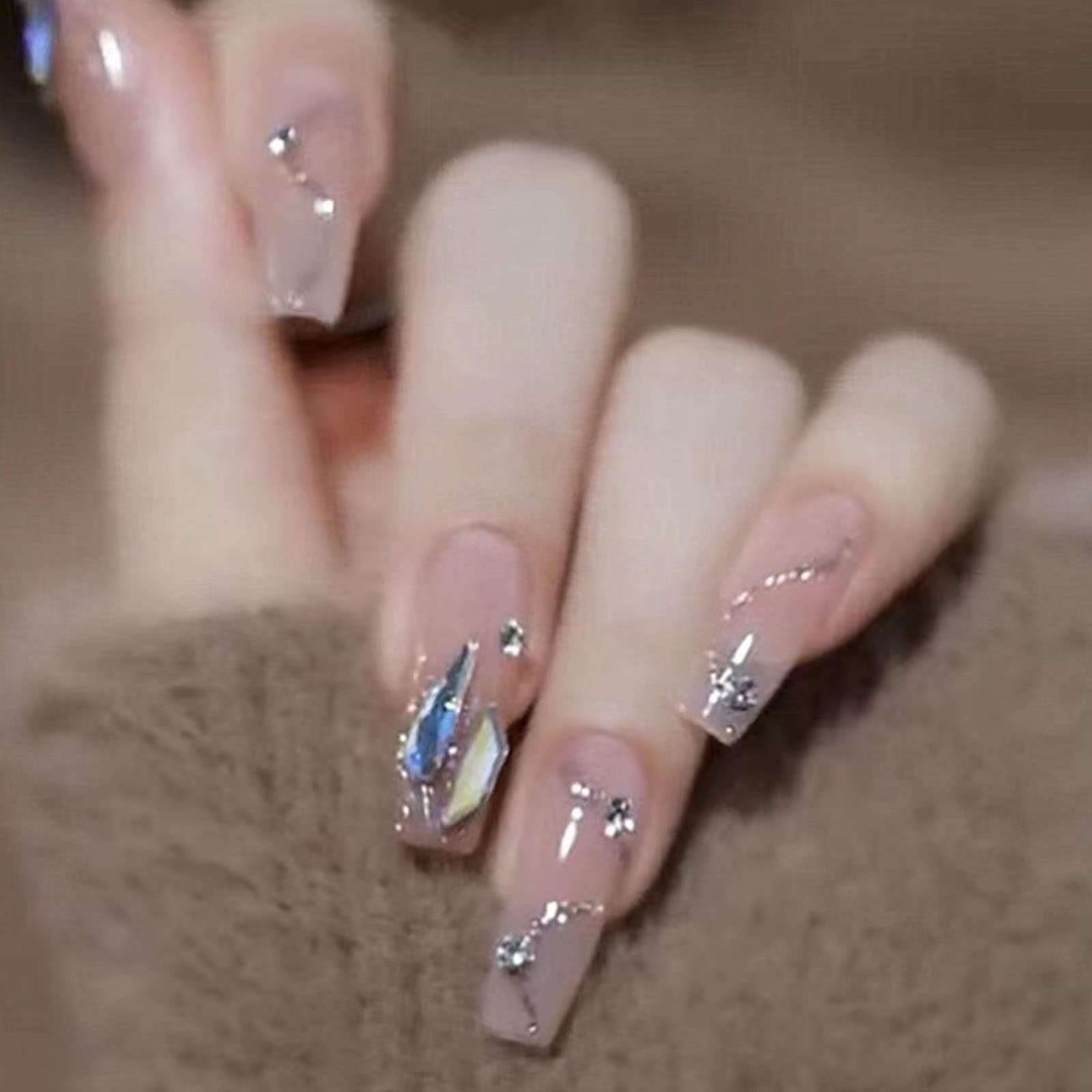 Hkanlre Gradient Press on Nails Tips Pink Coffin Long Fake Nails Crystal Full Cover False Nails Ballerina for Women and Girls 24PCS