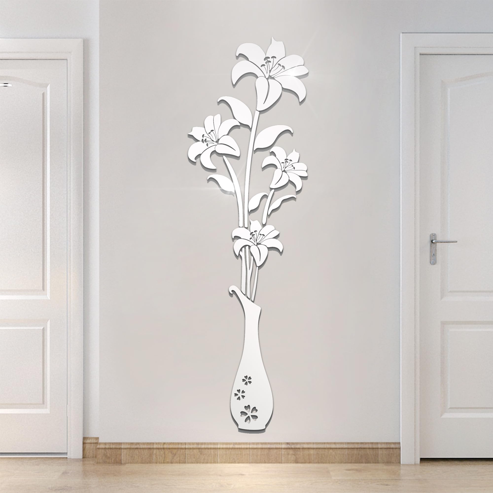 HNVNER Mirror Wall Decals - 3D Flower Wall Stickers Murals for Living Room Bedroom,DIY Walls Decor for TV Background and Sofa Backdrop (L, Mirror Silver)