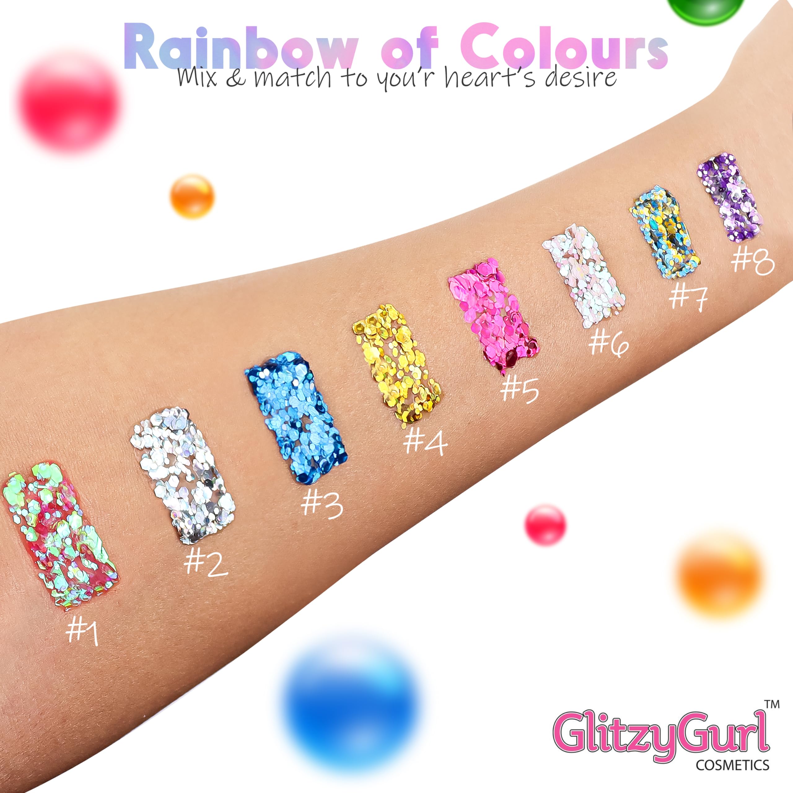PACK OF 8 BEAUTIFUL COLOURS - This pack of 8 x 12ml glitter body gels comes in a rainbow of colours, allowing you to mix and match to your heart's pleasure.