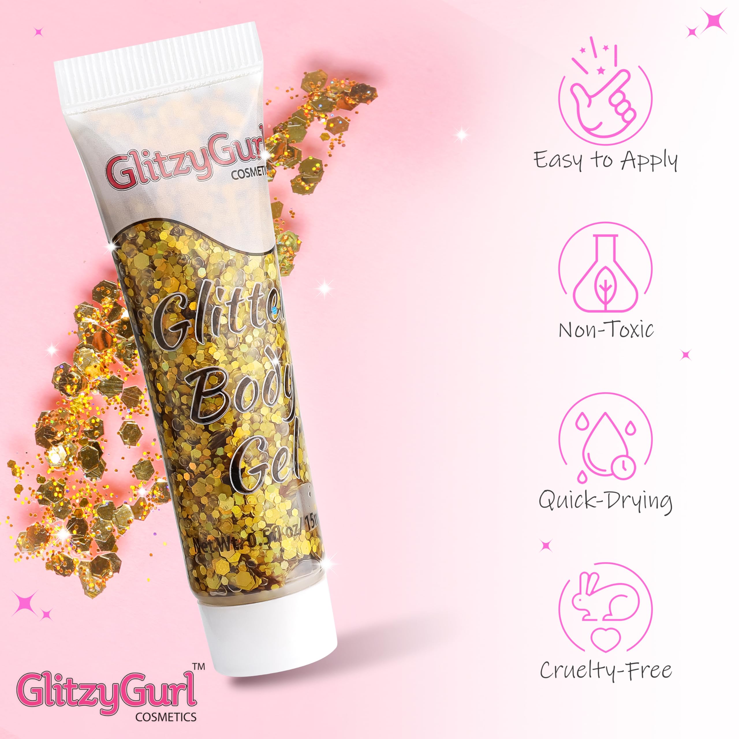 IMPROVE YOUR FUNKINESS BY ADDING CHUNKINESS! - GlitzyGurl chunky glitter gel tubes stand out from the crowd. Easy and quick to apply, our glitter gels are the ideal accessory for festivals, parties, concerts, nightclubs, or simply to give a bit of glam to everyday life!