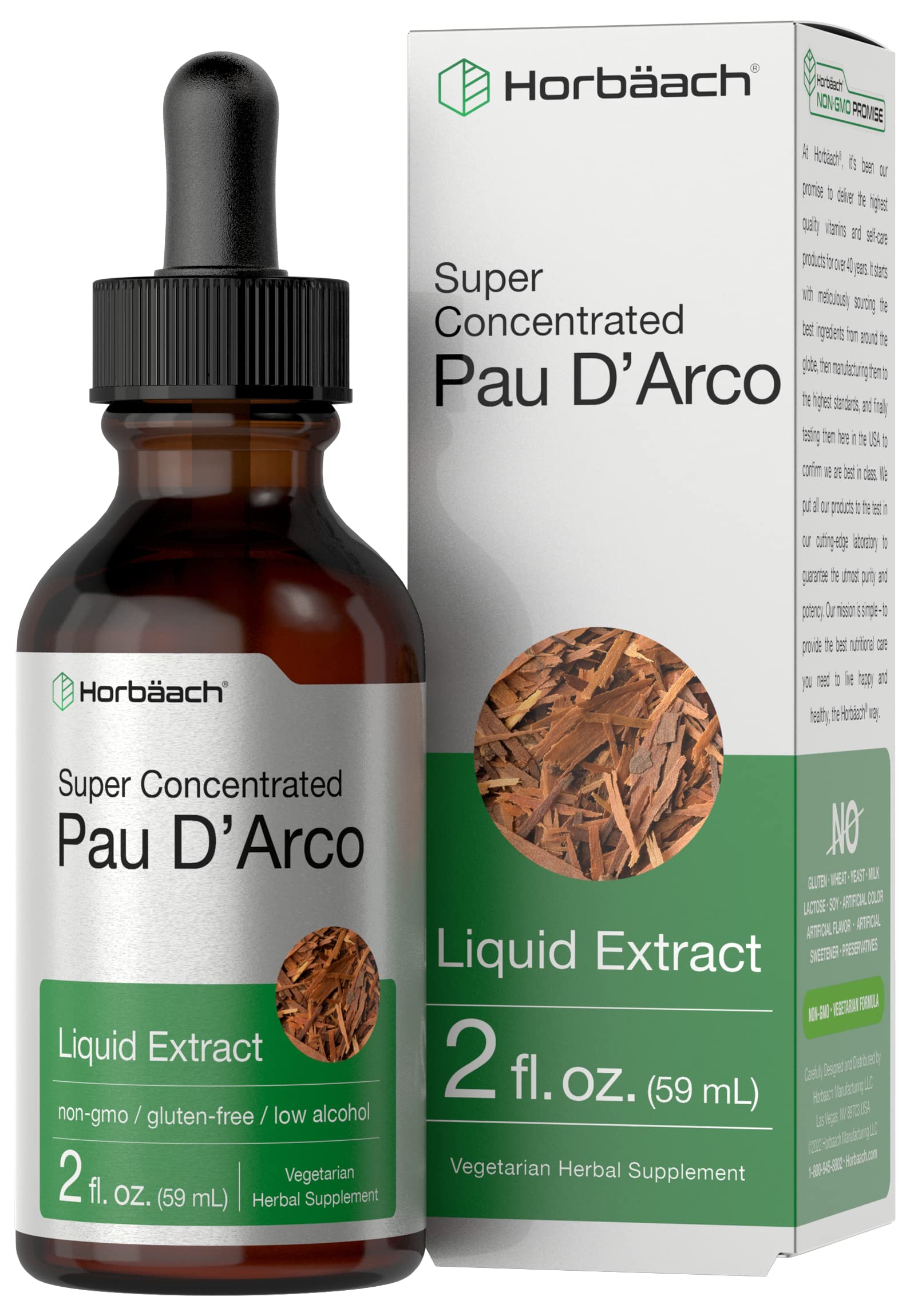 What is Pau D'Arco? Pau D'Arco is a tree that grows in the Amazon rainforest and other tropical regions in South America. The bark from the Pau D'Arco plant contains special botanical compounds known as naphthoquinones, a well-known source of antioxidants. This herb has been cultivated for centuries in various wellness practices around the world. Supplementing with Pau D'Arco Traditionally, Pau D'Arco was used to make to make herbal tea and now is available in many supplements including capsules, pills, powder, liquid drops, and tinctures. Tinctures provide exceptional purity and potency and are easy to take daily. Looking for the best source of this tropical herb for your wellness routine? Horbaach Pau D'Arco At Horbaach, our gluten-free and vegetarian formula provides a super concentrated form of Pau D'Arco in one low-alcohol liquid extract. It's scientifically-designed to offer maximum support. Simply add to a small amount of water to enjoy the benefits of this unique bark extract!