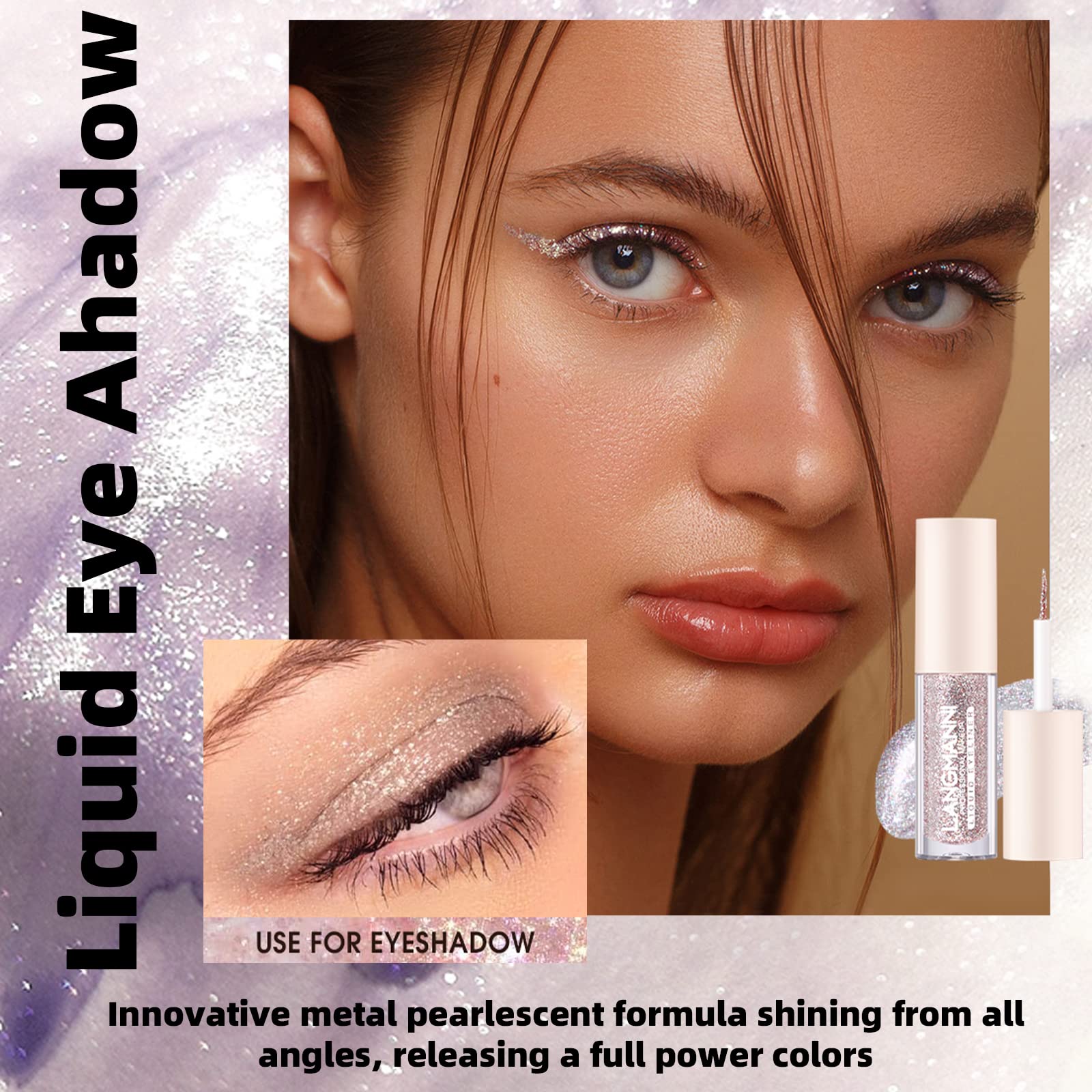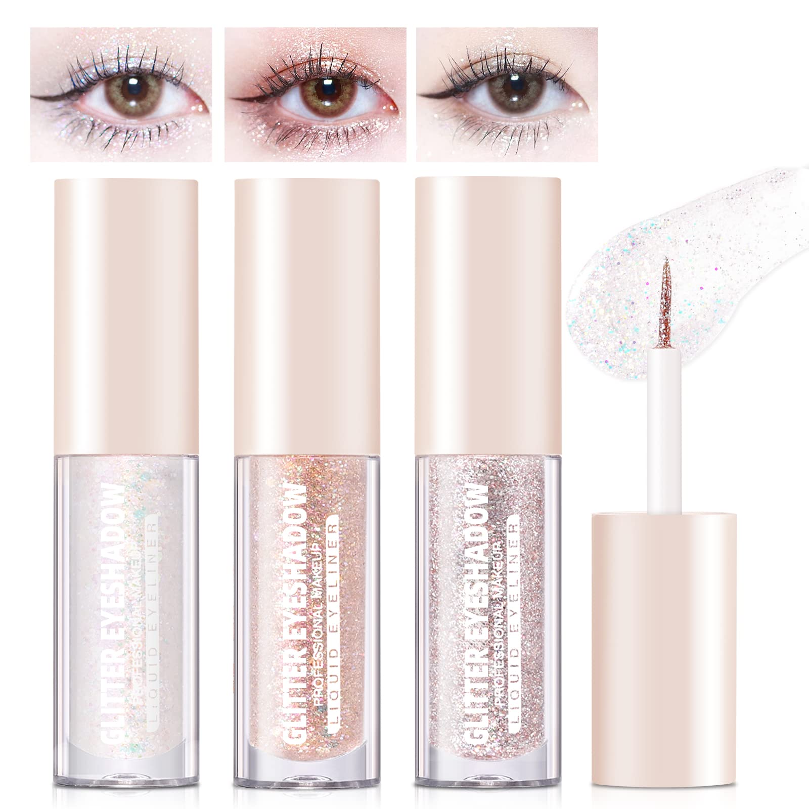 HOSAILY 3Pcs Liquid Glitter Eyeshadow Eyeliner Korean Makeup, Sparkling Metallic Shimmer Long Lasting Liquid Glitter Eye Shadow Eyeliner Eyelid, Tear Drop Loose Glitter Glue for Eye Crystals Makeup