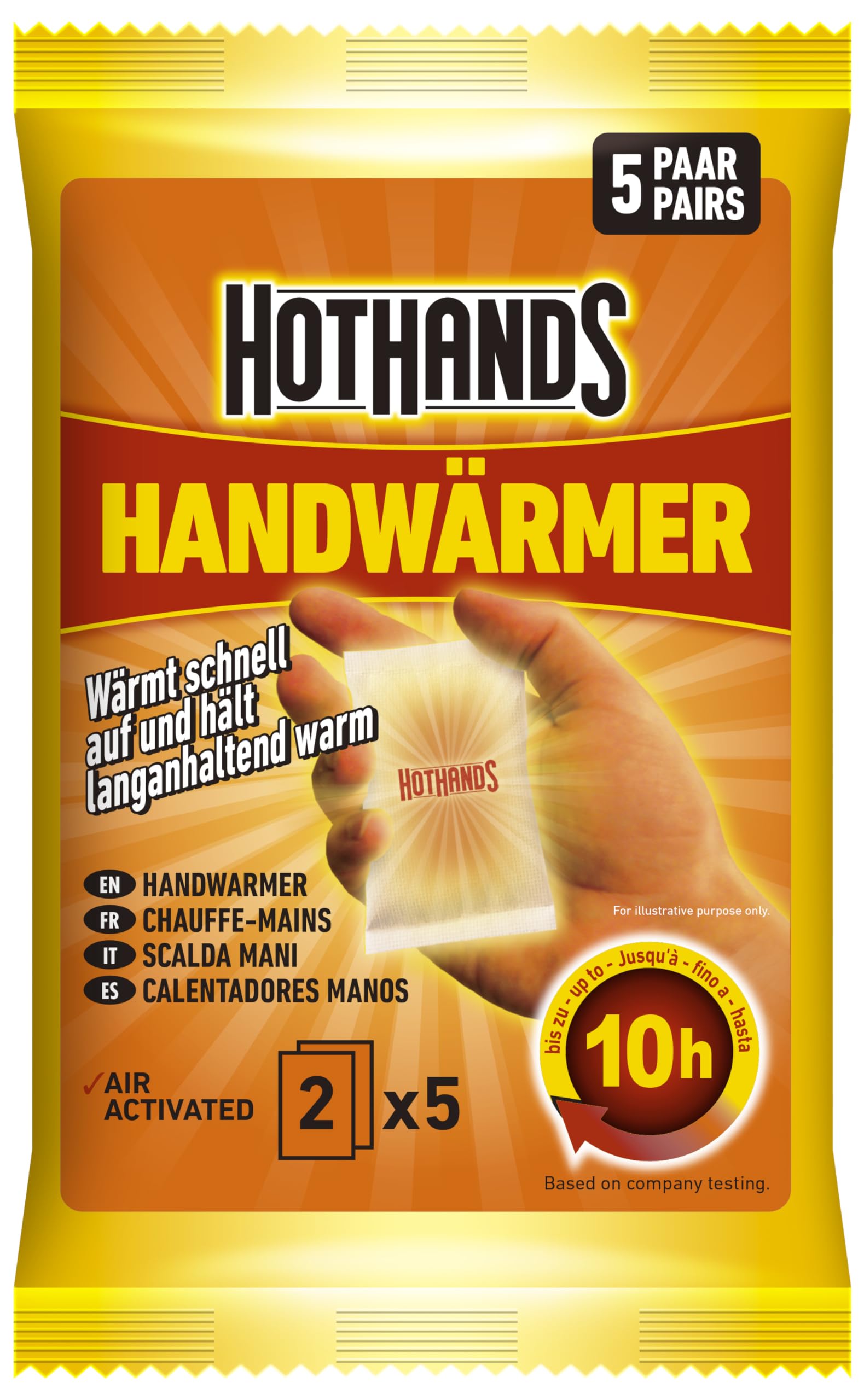 HOTHANDS hand warmers protect you from the cold wherever you are - ideal for outdoor activities. The warmers are ready to use, heat up quickly and provide simple, consistent warmth that lasts up to 10 hours.