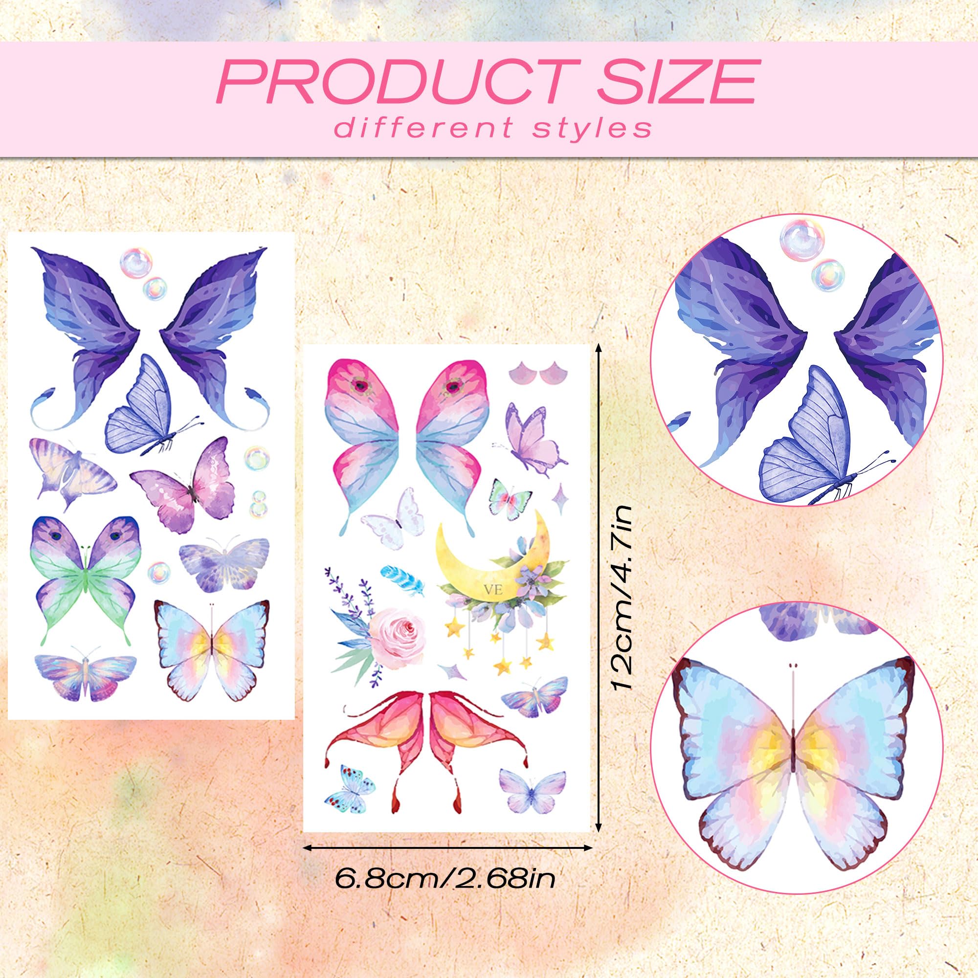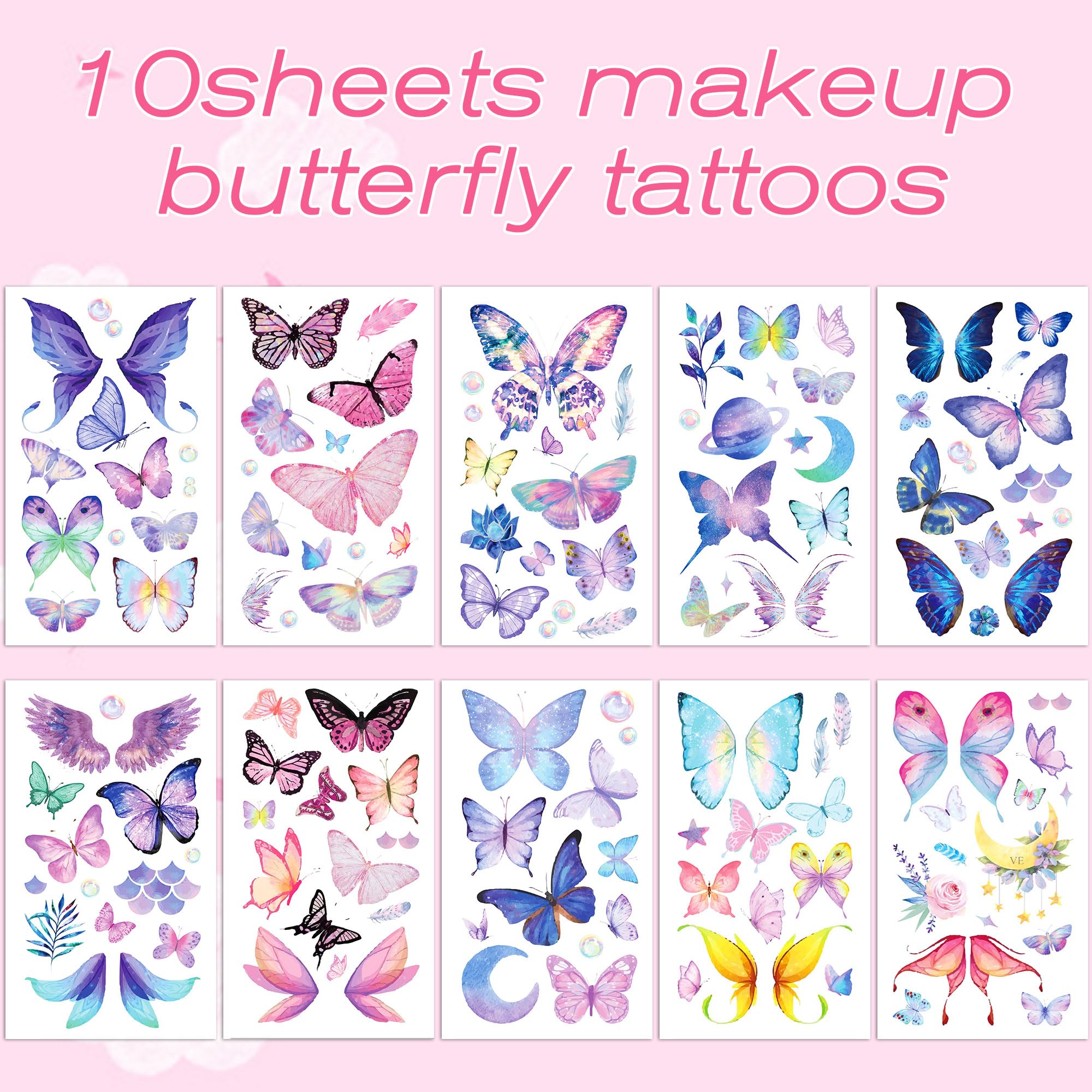 HOWAF 10 Sheets Glitter Butterfly Temporary Face Tattoos, Spring Fairy Flowers Tattoo Stickers for Face Eye Body, Glitter Butterflies Themed Tattoos Stickers for Birthday Party Favors Party Fillers