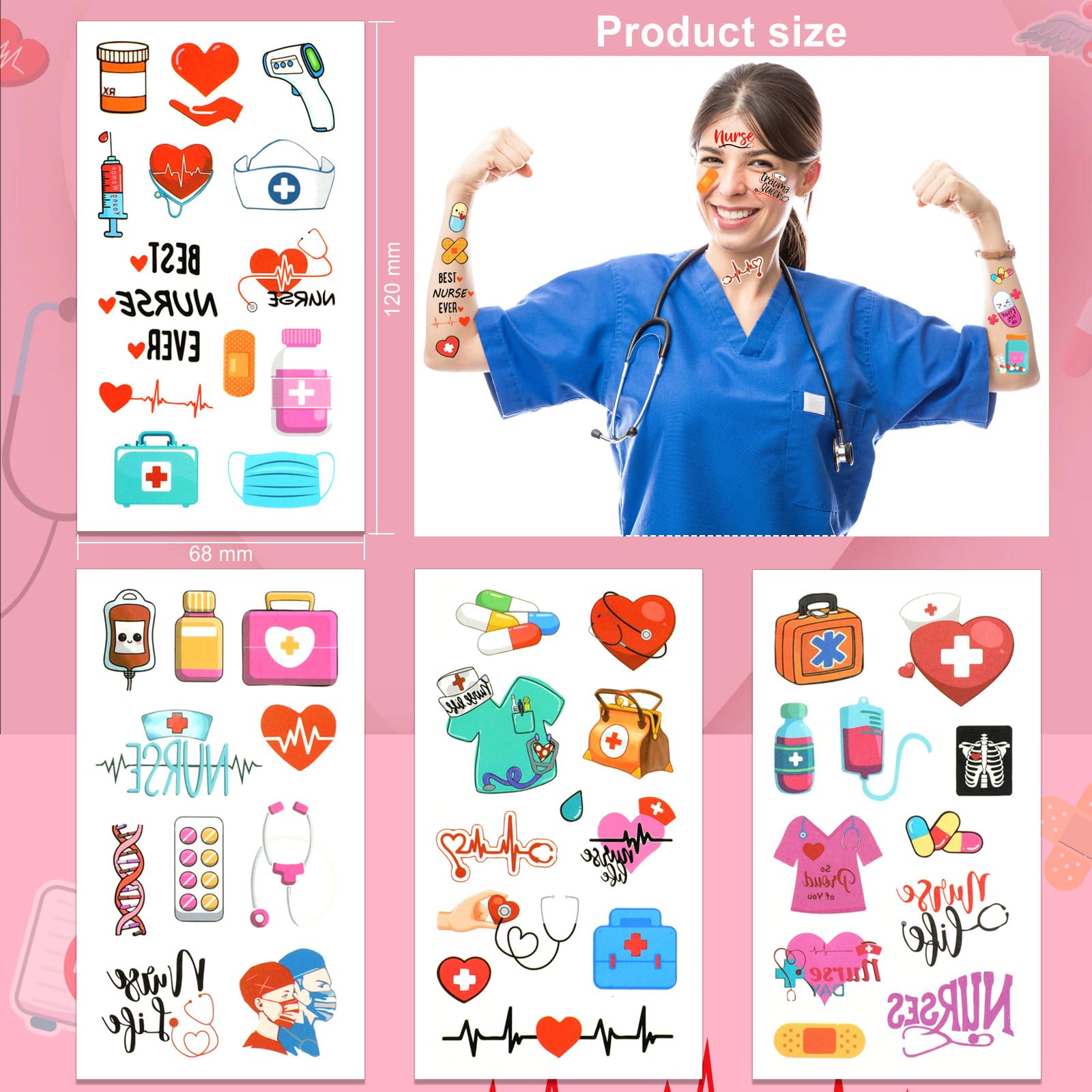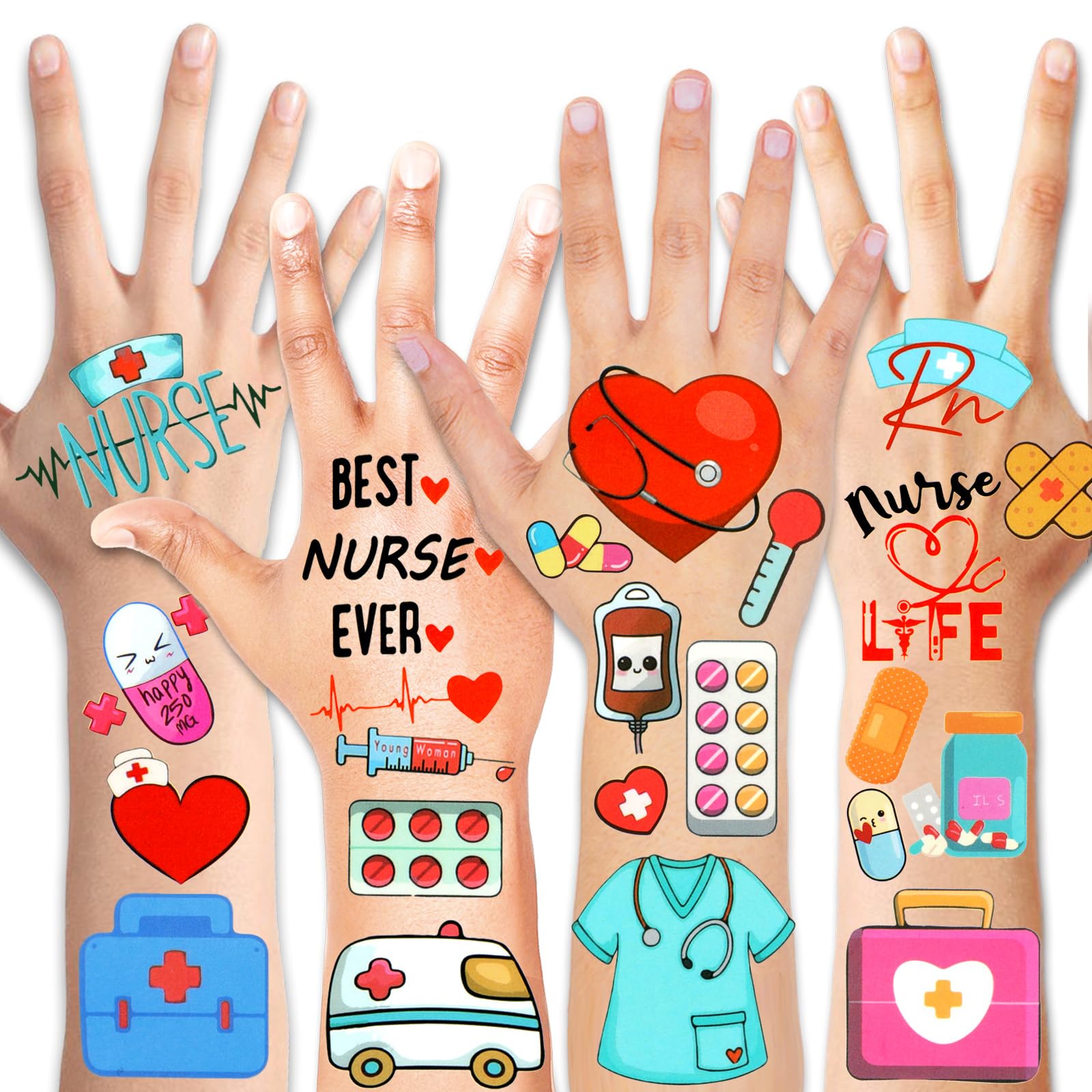 HOWAF 100+ Pcs Nurse Temporary Tattoos, Funny Medical Nurse Tattoos Party Decoration Supplies Favors Gifts Nurses Appreciation Week Tattoos Stickers for Boys Girls School Reward Thank You Nurse Tattoo