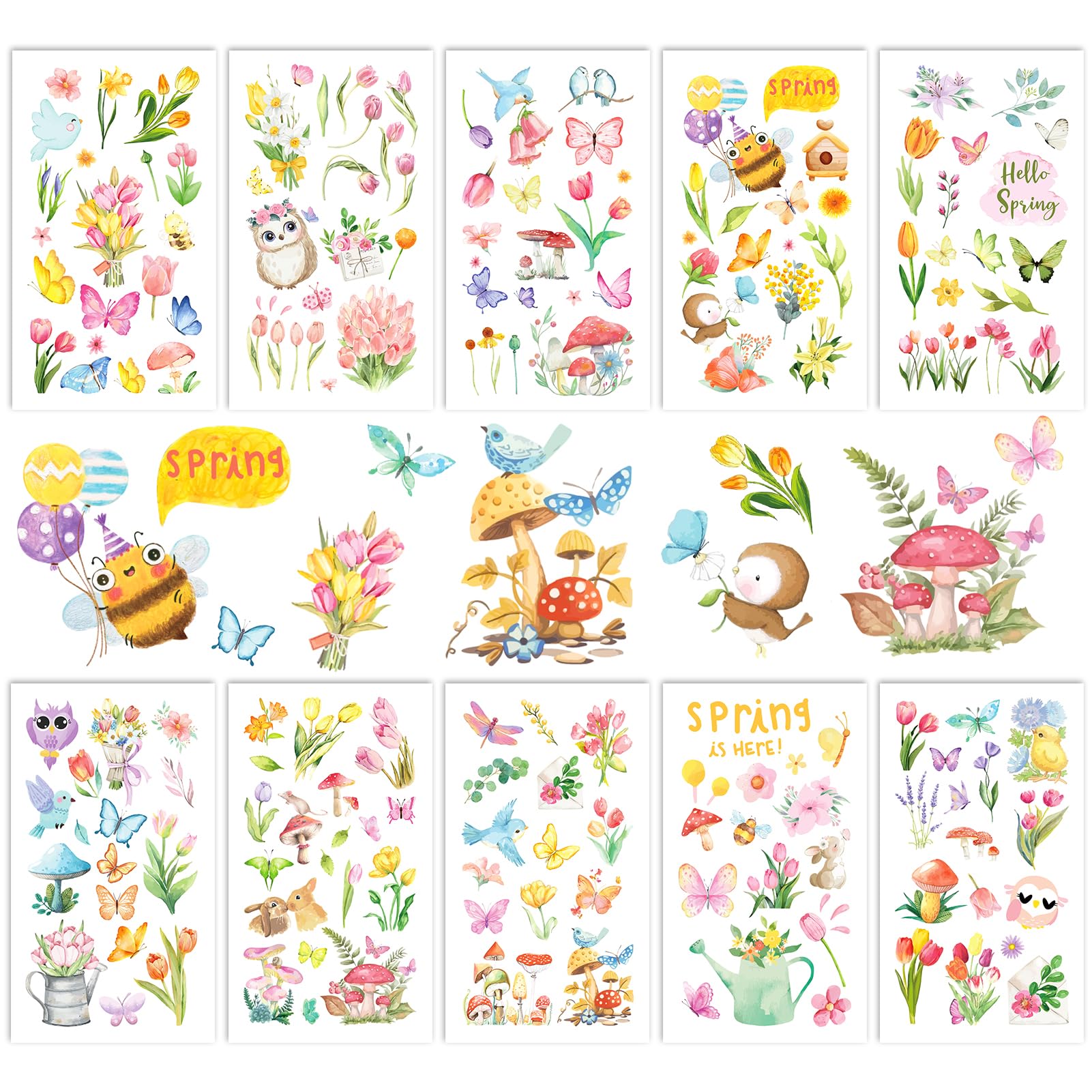 HOWAF 160+ Spring Easter Temporary Tattoos,Hello Spring Party Supplies Tulip Bloom Temporary Tattoos Stickers for Adults and Kids Cute Cartoon, Spring Flowers Butterflies Waterproof Tattoos Stickers