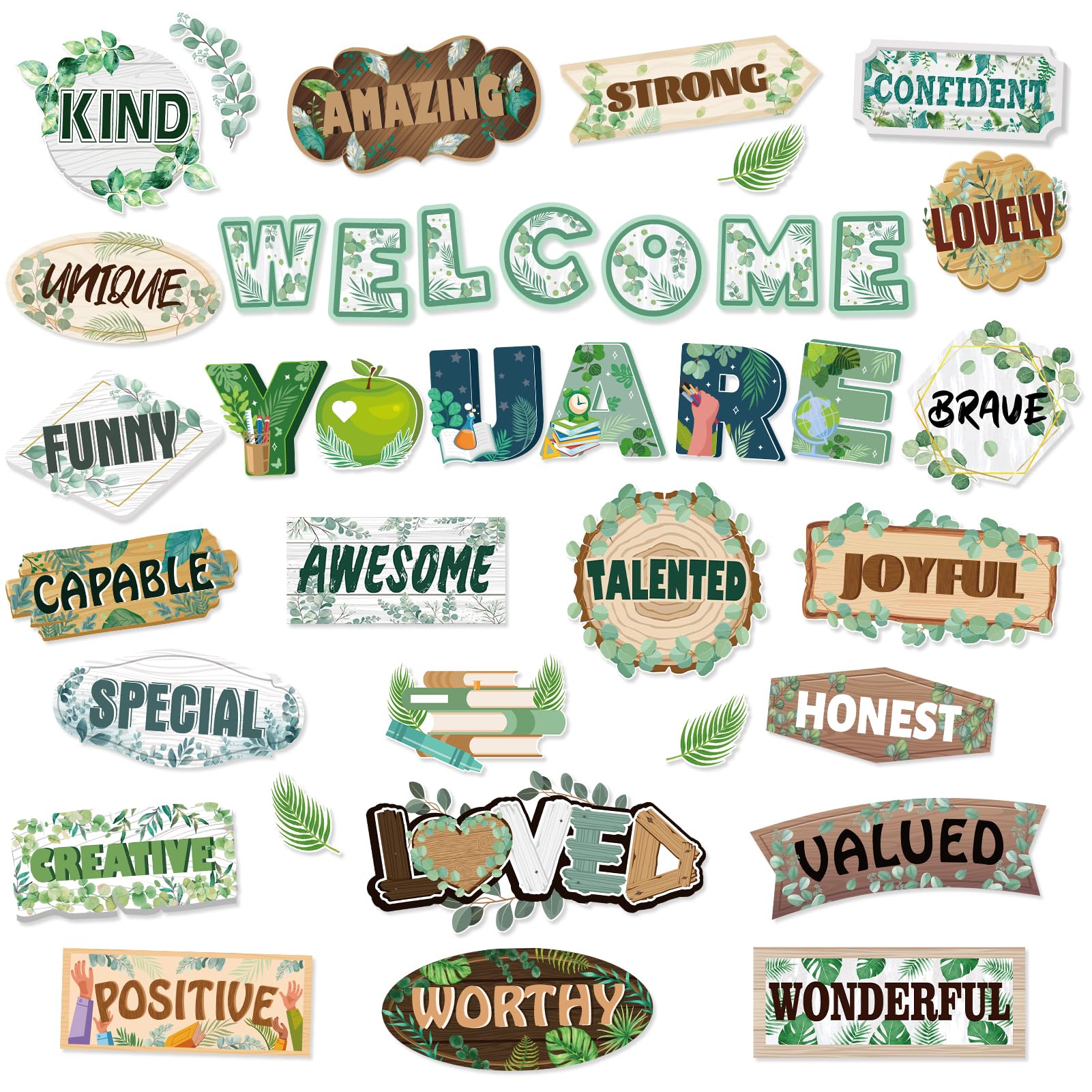 HOWAF 39pcs Eucalyptus Affirmation Station Bulletin Board Set, Inspirational Cutouts for Welcome Back to School Classroom Decor, Positive Accents Cut-Outs for First Day of School Chart Wall Supplies