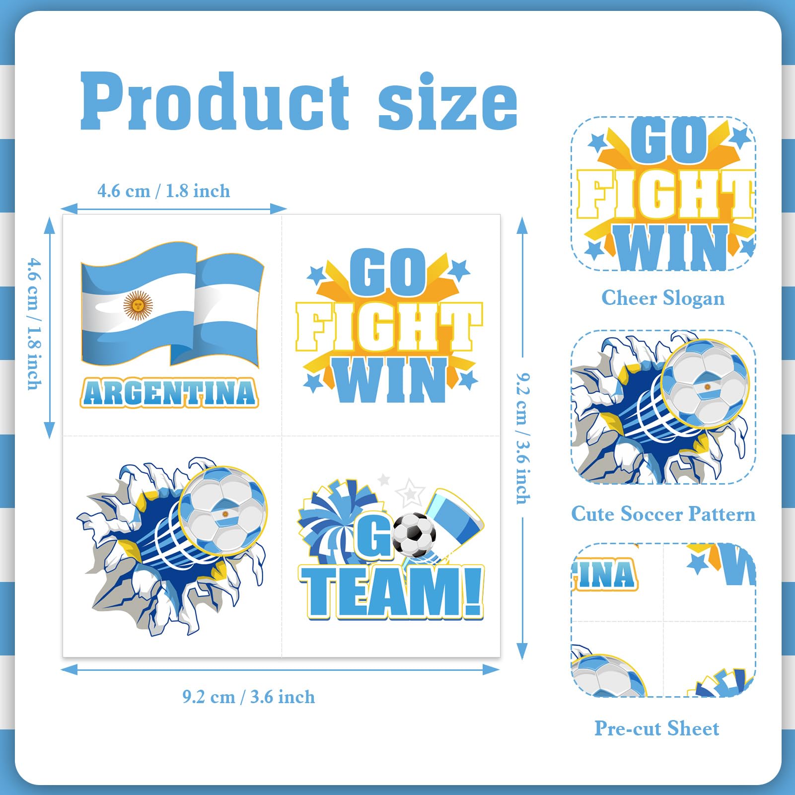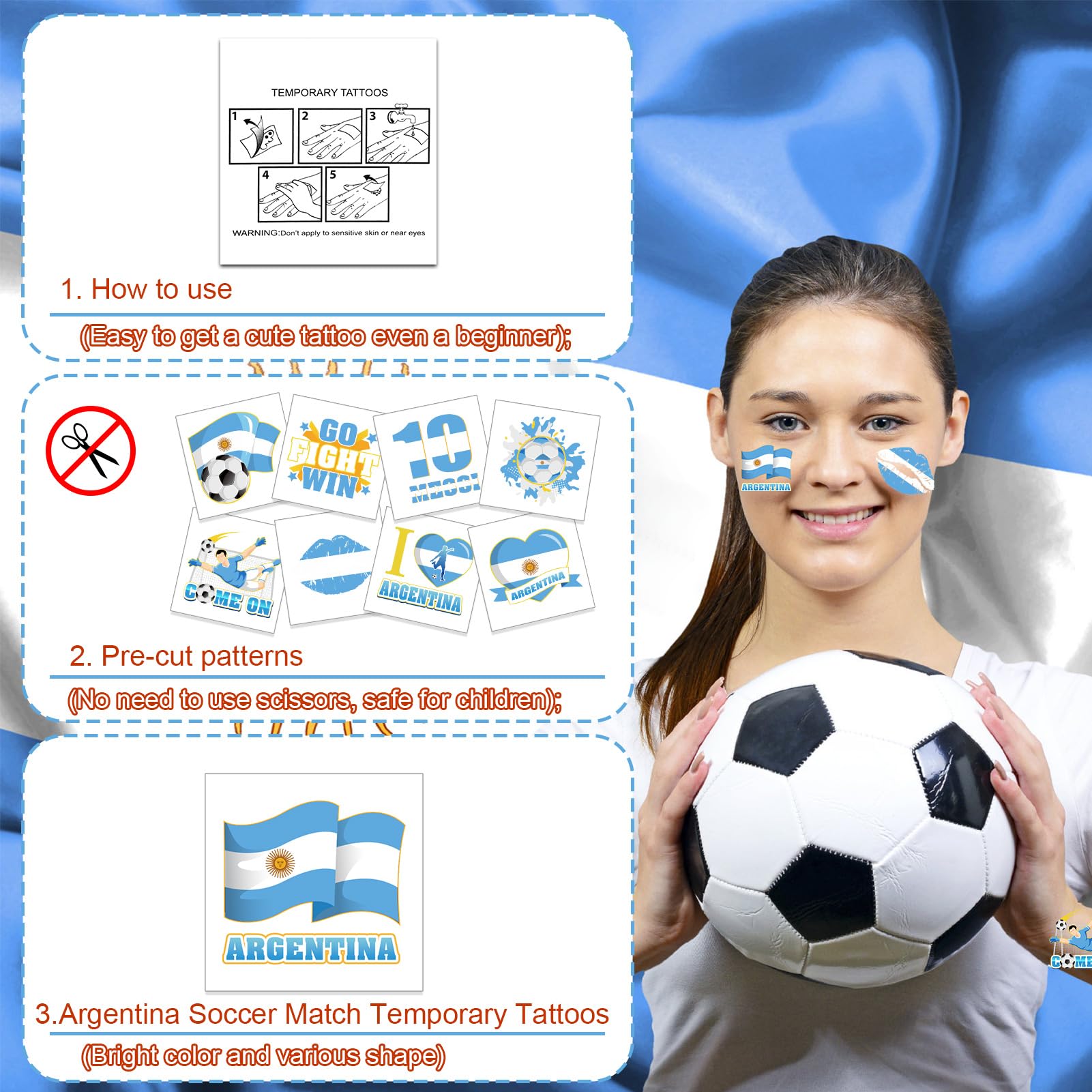 HOWAF 60pcs Argentina Soccer Temporary Tattoos for America Tournament 2024 Soccer Match Decoration, Argentina Star Tattoos Stickers Argentina Flag Soccer Vamos Argentina America 2024 Soccer Match
