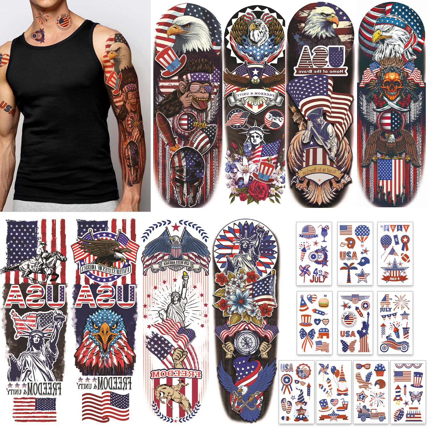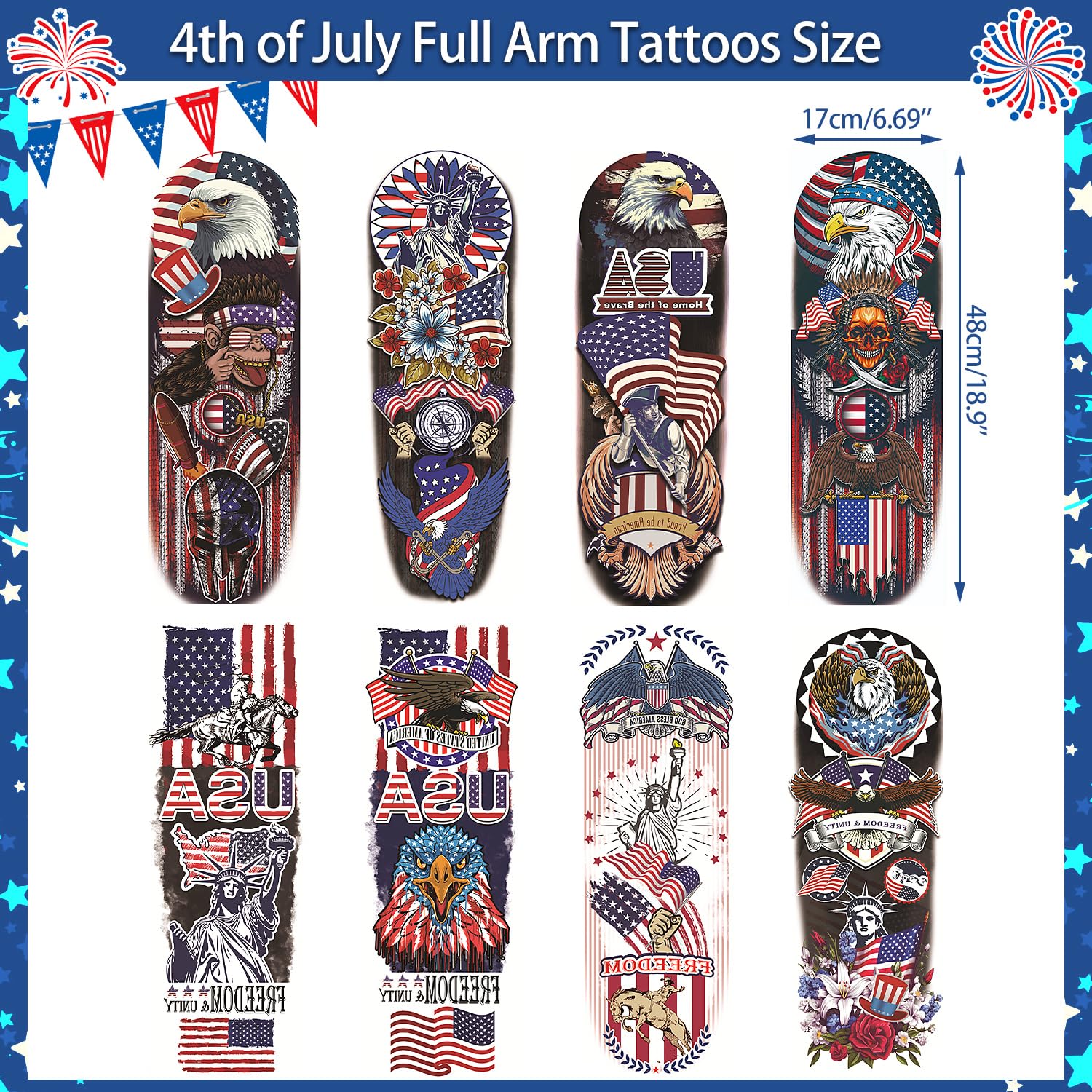 HOWAF 88pcs 4th of July Temporary Tattoos Set, Independence Day Full Arm Face Tattoos USA Flag Face Tattoos Sleeve Tattoo Stickers for Men Women Fourth of July Party Parade Supplies Patriotic Decor