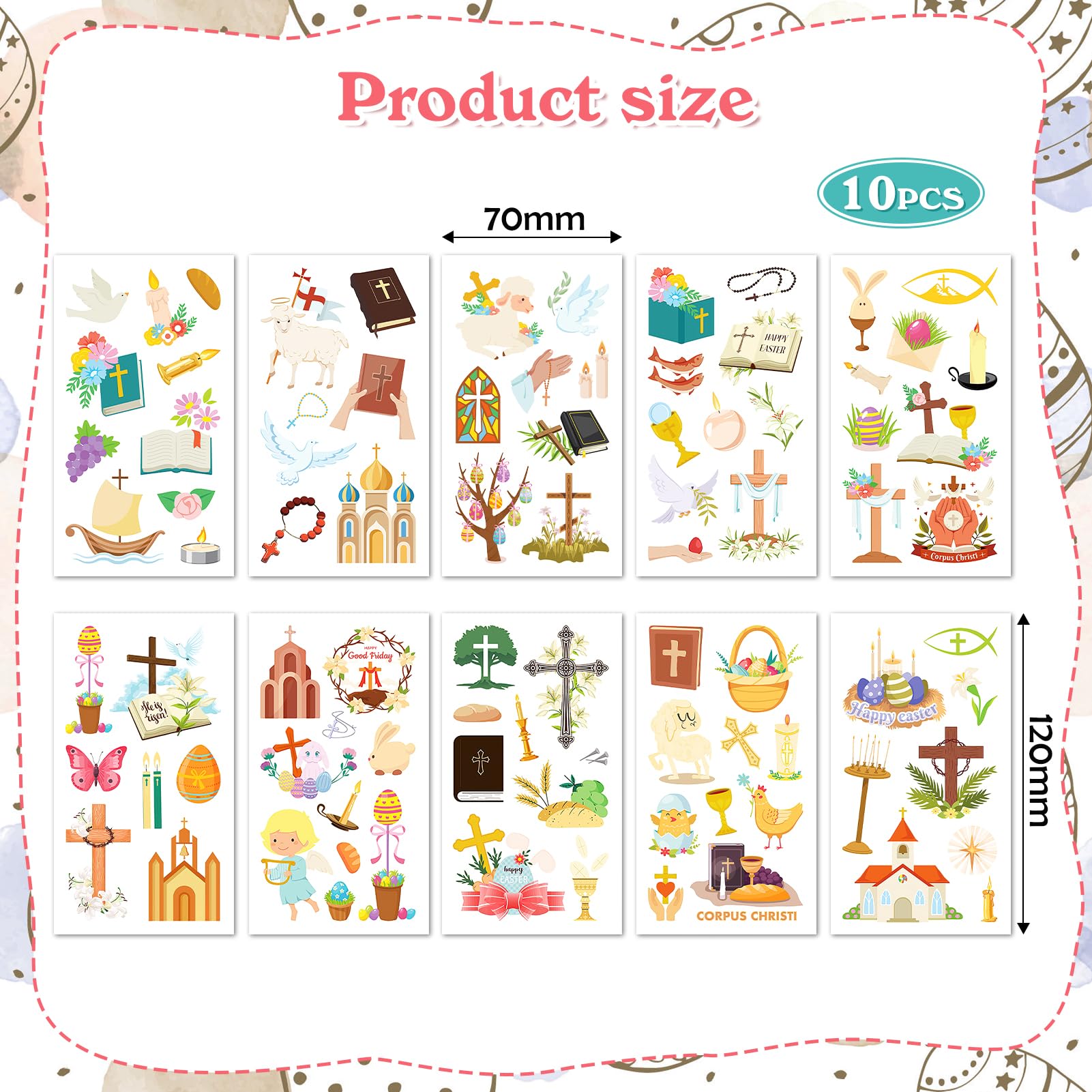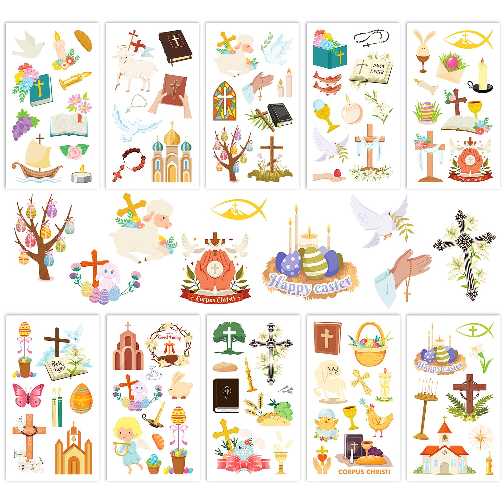 HOWAF 90+ pcs Religions Christian Temporary Tattoos, 10 Sheets Jesus Christian He is Risen Easter Temporary Tattoos for Face Hand Body, Waterproof Tattoos Stickers for Easter Spring Party Favors