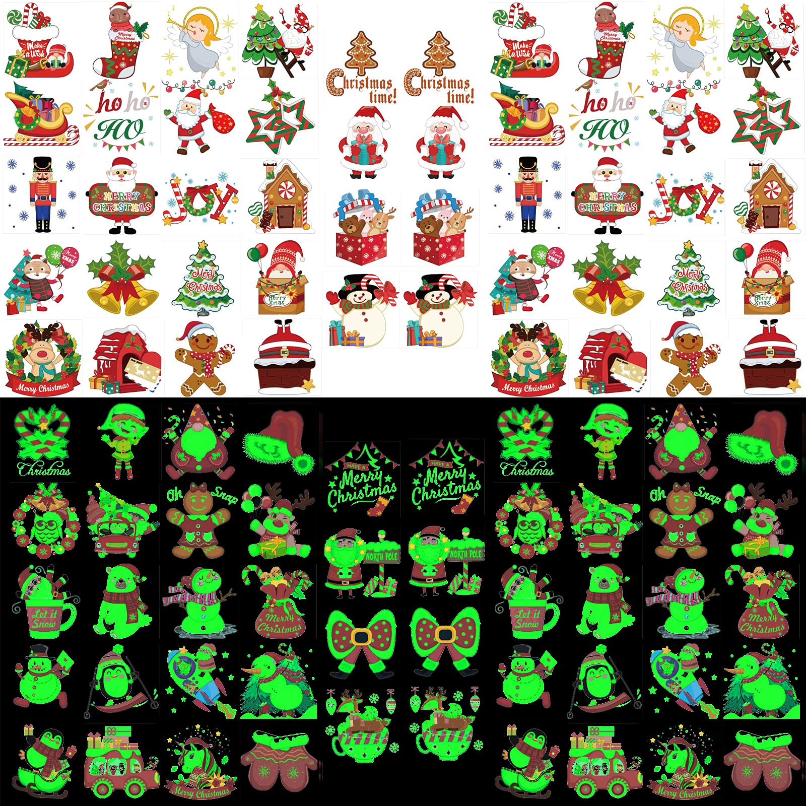 HOWAF 96 pcs Christmas Luminous Temporary Tattoos Stickers for Kids, Waterproof Tattoo Stickers with 48 Patterns for Kids Children Christmas Holiday Party Supplies Favors