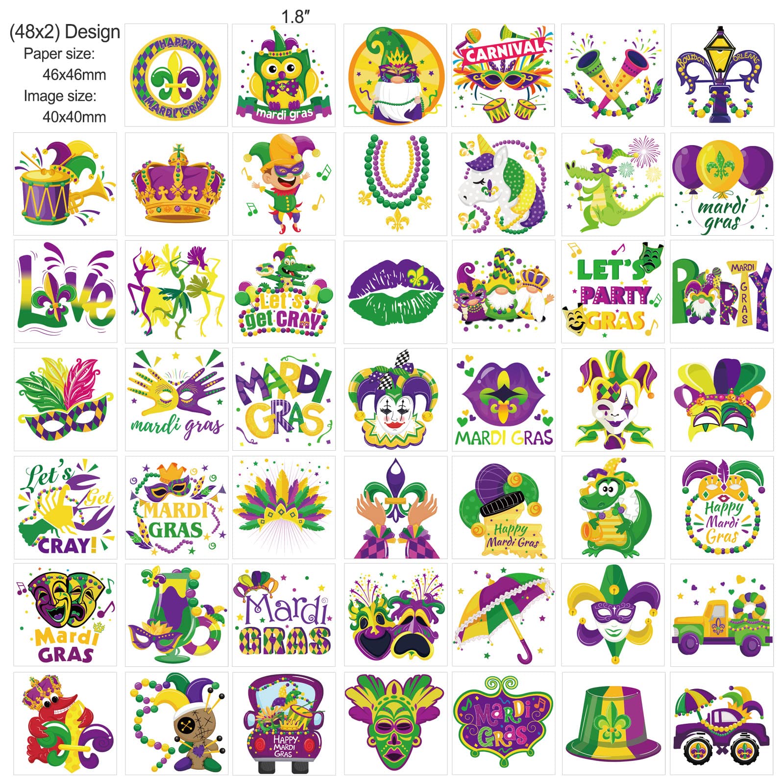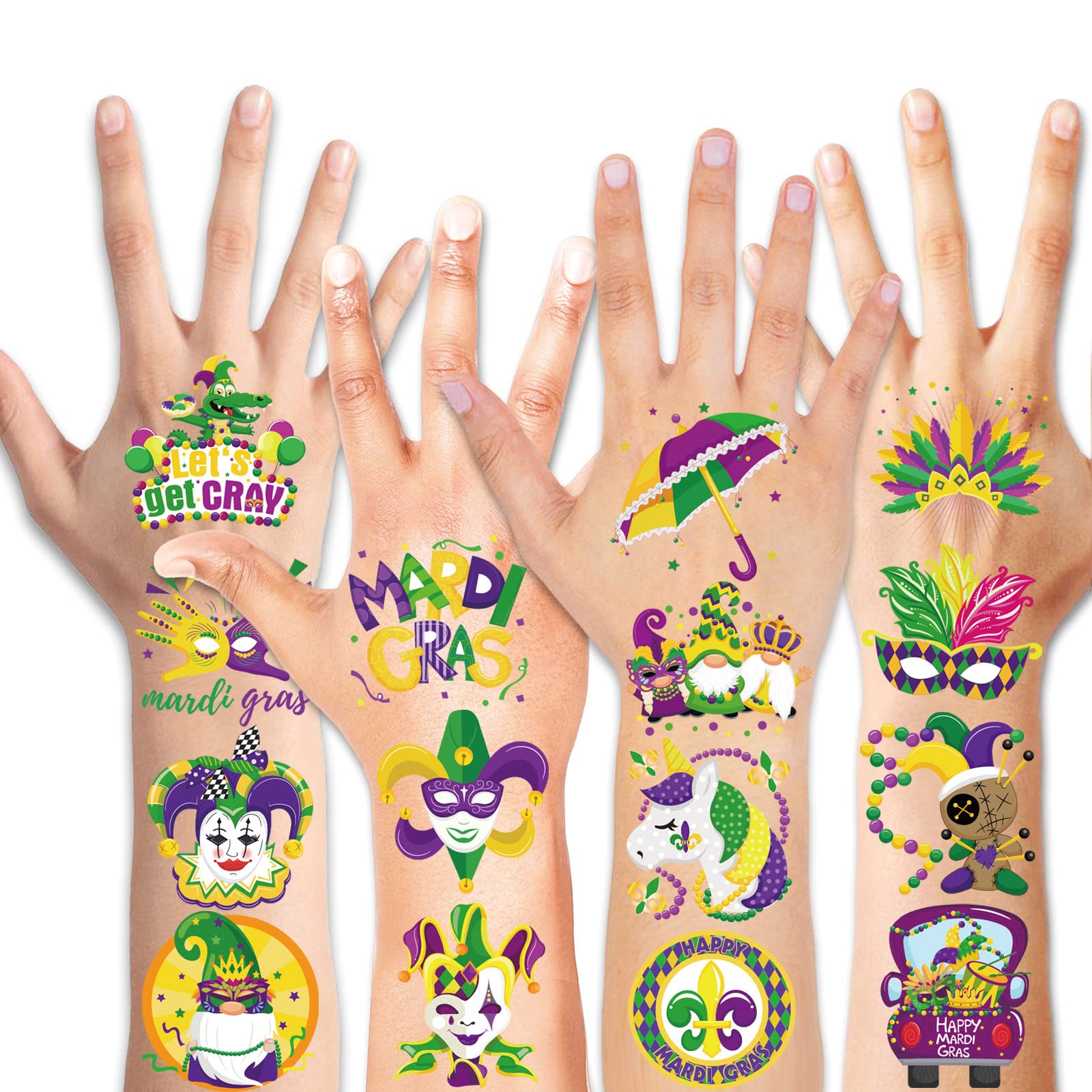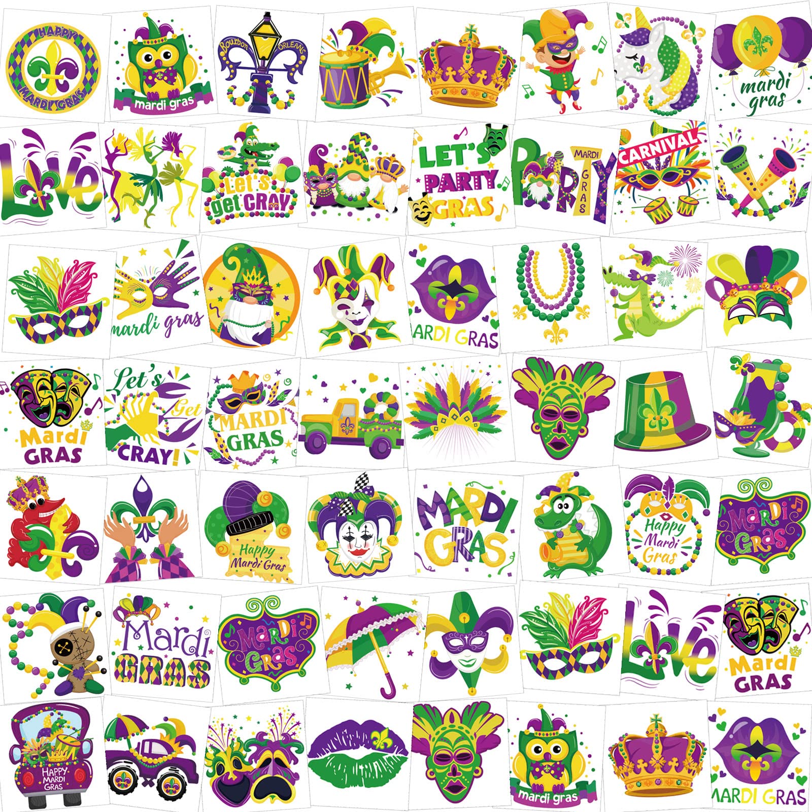 HOWAF 96 Pieces Mardi Gras Temporary Tattoos, 48 Styles New Orleans Party Temporary Tattoos Stickers for Kid, Mardi Gras Themed Fake Tattoos with Crown, Mask Design for Masquerade Party Decoration