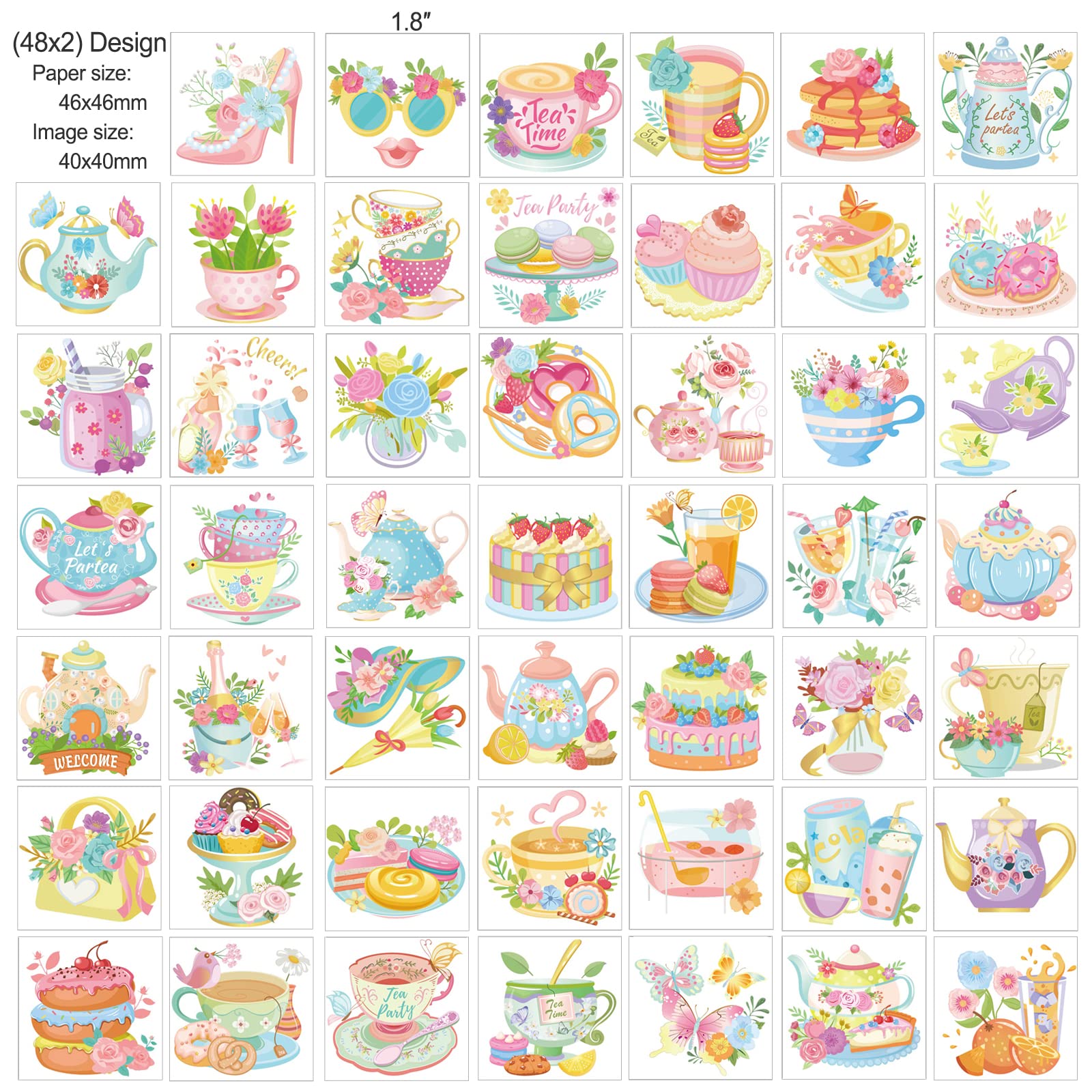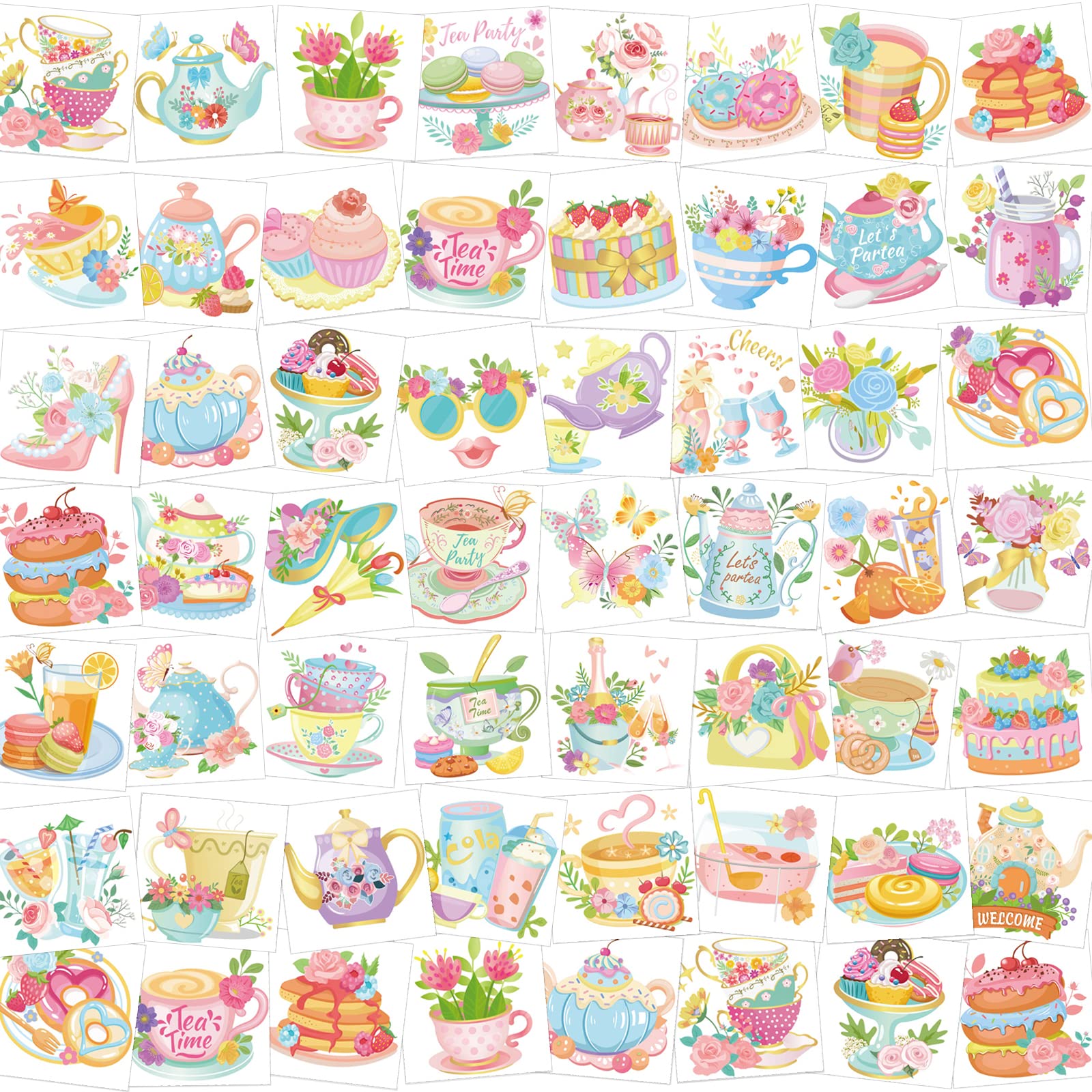 HOWAF 96 Pieces Tea Party Temporary Tattoos, 48 Styles Partea Birthday spring Party Supplies Temporary Tattoos Stickers for Girls Boys Gifts, Tea Kettle, Cupcakes, Tea Party Birthday Party Supplies