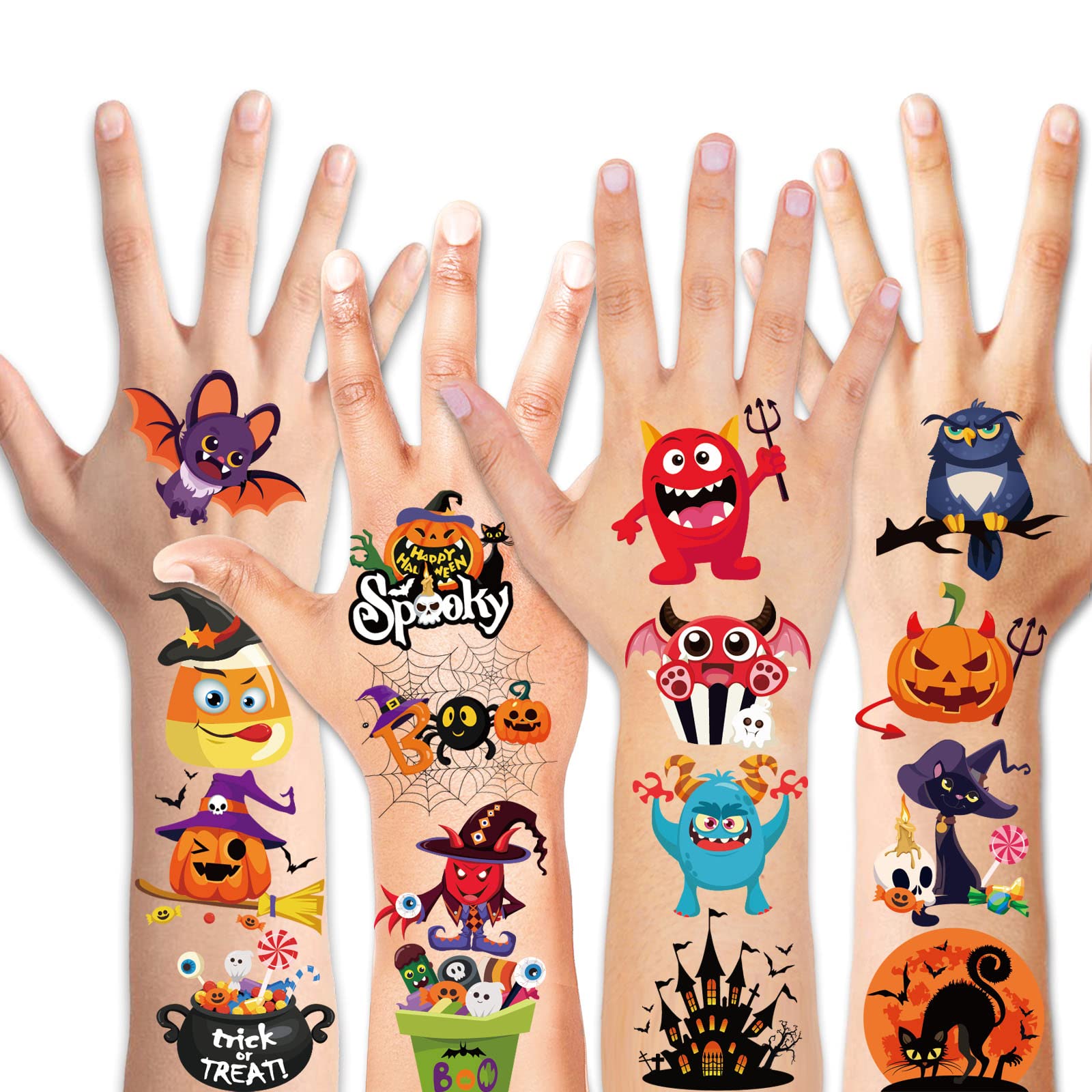 HOWAF Halloween Temporary Tattoos for Kids, 96 Pieces Halloween Fake Tattoos Pumpkin Bat Spider Patterns for Halloween Party Favor & Goody Bags Fillers, Waterproof Body Tattoos for Boys and Girls Decoration Supplies