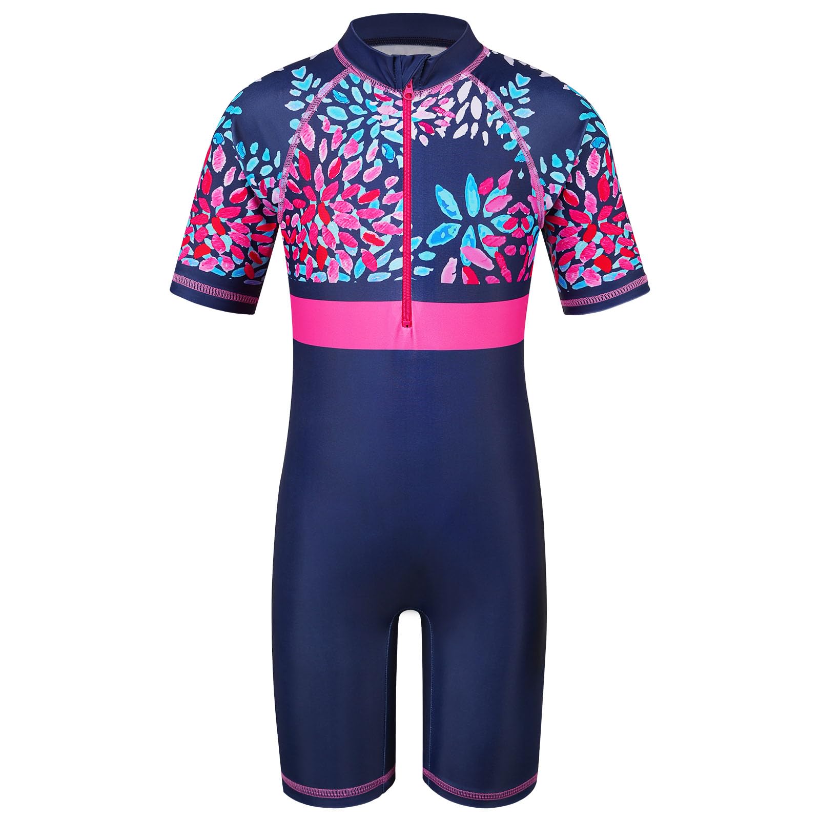 HUAANIUE Long Swimsuit Girls Swimming 1pcs Swimwear UPF 50+ UV Sunsuit with Zipper 4-12Y Summer Swimming Sportswear(DaisyNavy,10A)
