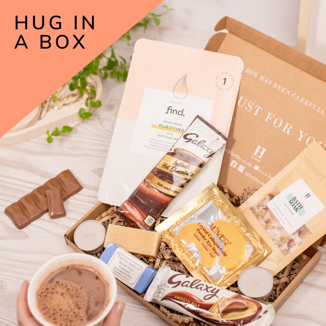 Looking for a perfect gift for your female friend, mum, sister, or girlfriend? Look no further than our Hug in a Box pamper gift box! This gift box is perfect for any occasion, from birthdays to baby showers, and includes a variety of items to help your loved one relax and feel pampered. Our gift box is perfect for a range of occasions, including birthday presents for women, bride to be gifts, and friend gifts. Whether you're looking for a 30th birthday gifts for women, 40th birthday gifts for women through to baby shower gifts, this box contains something for everyone. Our gift box features an array of products, including relaxation gifts for women, self-care gifts for women, and wellness sets. Plus, our gift box makes a great hampers for women, giving your loved one a truly indulgent experience. Don't miss out on our friend gifts for women, friendship gifts for women, and best friend gifts. Order now and experience the joy of giving with our birthday presents for women, birthday hampers for women, and birthday presents for women friends. Get your friend hamper women, birthday presents pregnant women, birthday presents ladies, birthday hampers sister, and birthday hamper girls today! So why wait? Treat your loved one to a Hug in a Box pamper gift box today! Whether it's a gift for friends, gifts for mum on her birthday or gifts for girlfriend, this hand packed box of carefully curated items is bound to make their day. Pamper gifts for women and self care gifts for women are the perfect treat and offer a spa experience at home.
