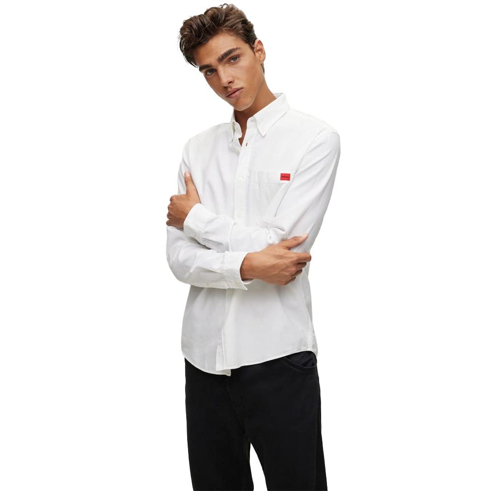 HUGO Mens Evito Oxford-Cotton Slim-fit Shirt with red Logo Label