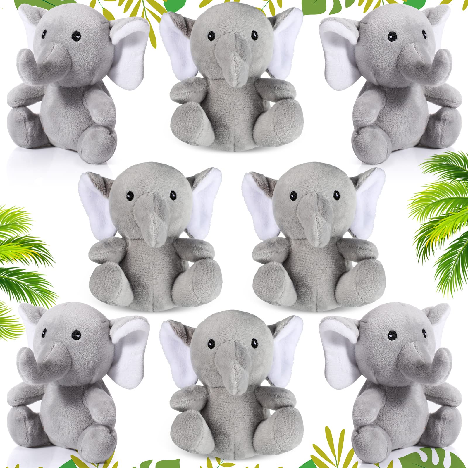 HyDren 8 Pcs Plush Mini Elephant Stuffed Animal Toys 4 Inches Cute Soft Forest Elephant Toys for Baby Shower Birthday Party Christian Charity Donation Supplies(Grey)