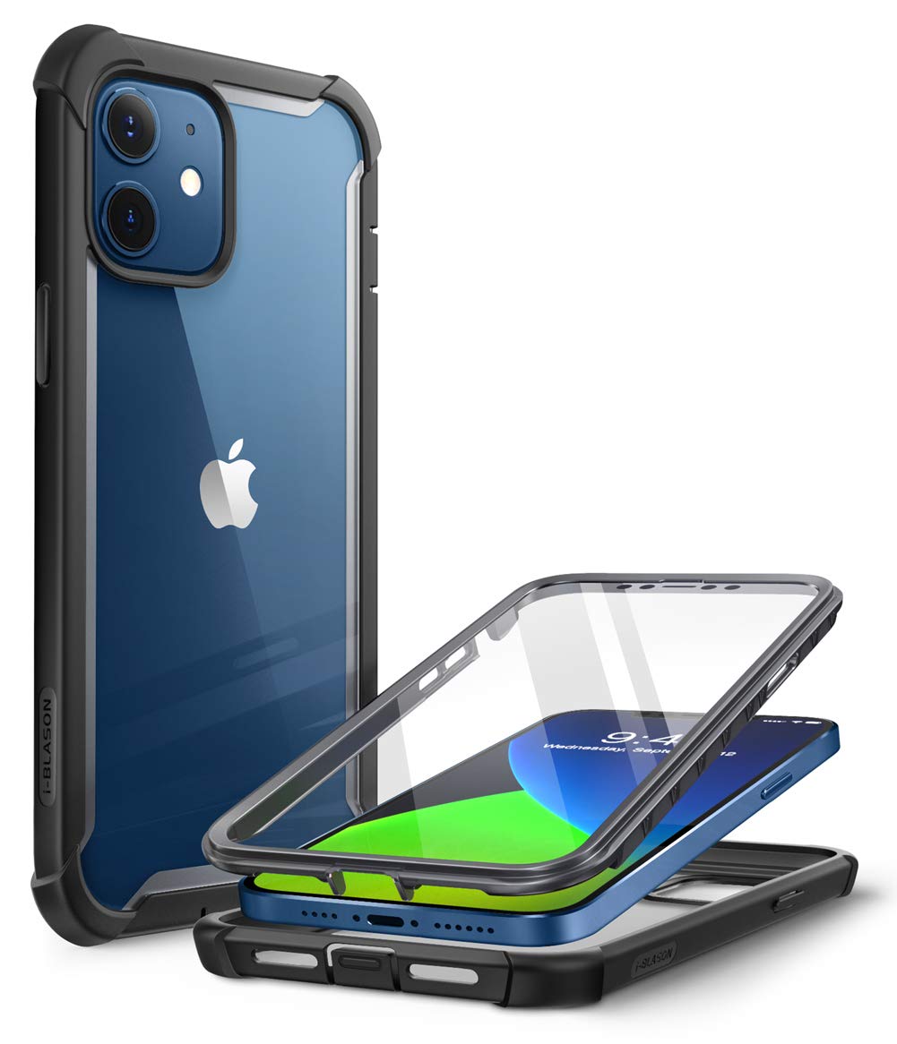 i-Blason Ares Series Designed for iPhone 12 Mini Case (2020), Dual Layer Rugged Clear Bumper Case with Built-in Screen Protector (Black)