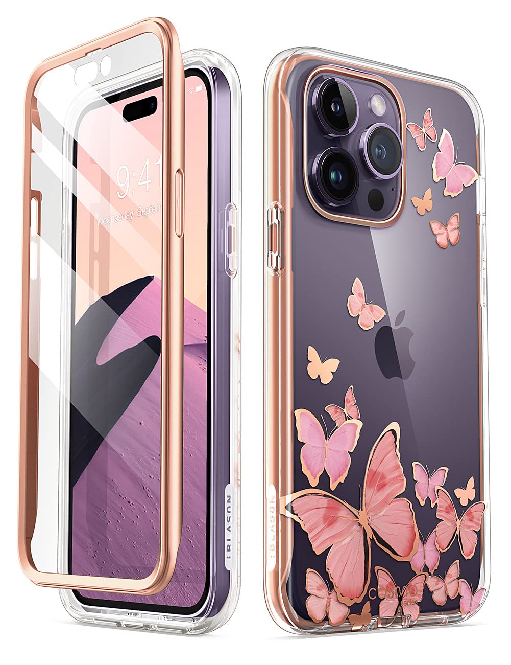 i-Blason Cosmo Series for iPhone 14 Pro Case 6.1 inch (2022 Release), Slim Full-Body Stylish Protective Case with Built-in Screen Protector (Pinkfly)