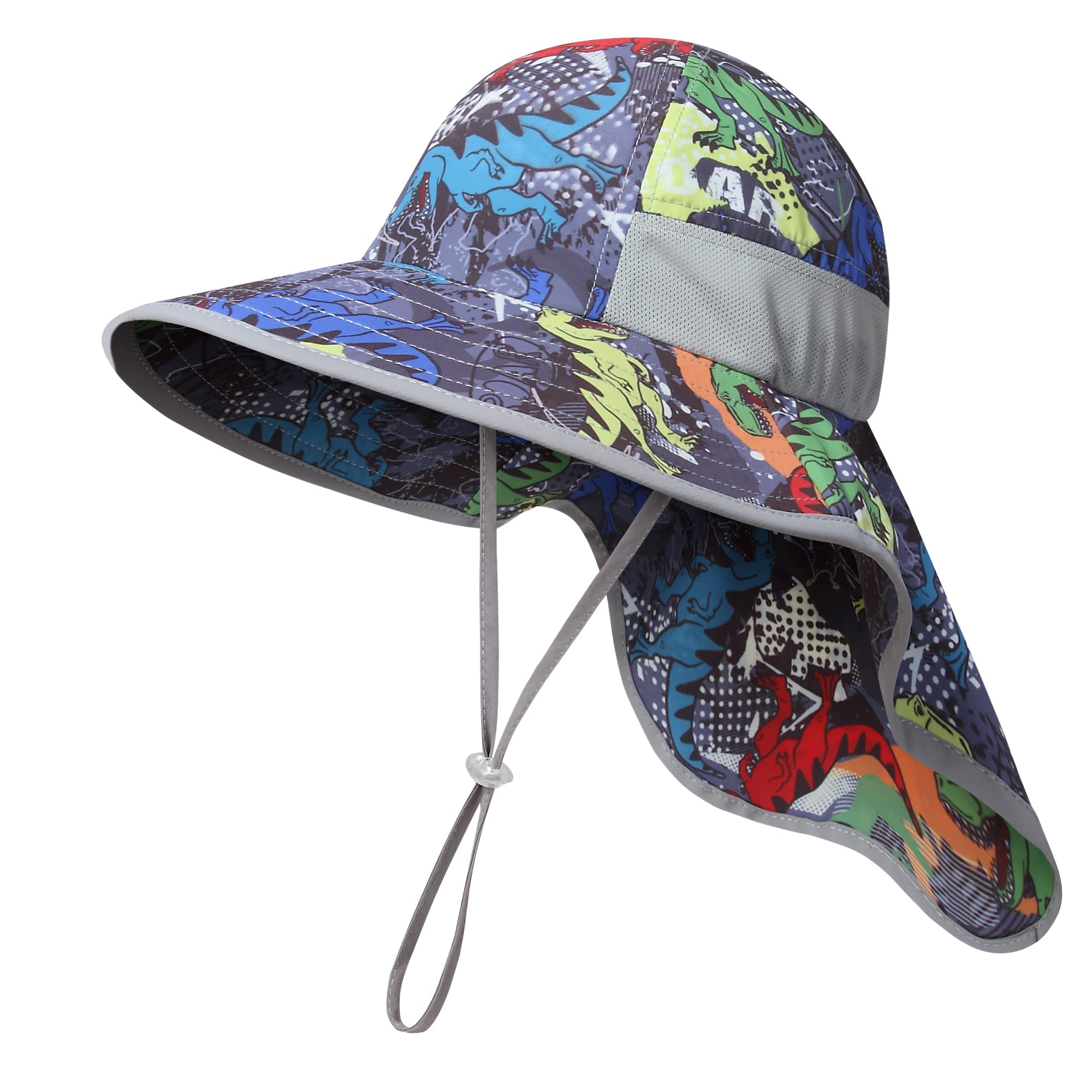 icolor Kids Hats Toddlers Sun Hat Sun Protection swim hat Breathable Bucket Travel Beach Hats fashionable Play Sun hat for Toddler Girl Boy Ages 3-12, great keeping the sun rays out of your little ones when playing outdoor in summer season.icolor Kids' Play Hat with Wide Brim Neck Flap made of UPF 50+ Nylon.