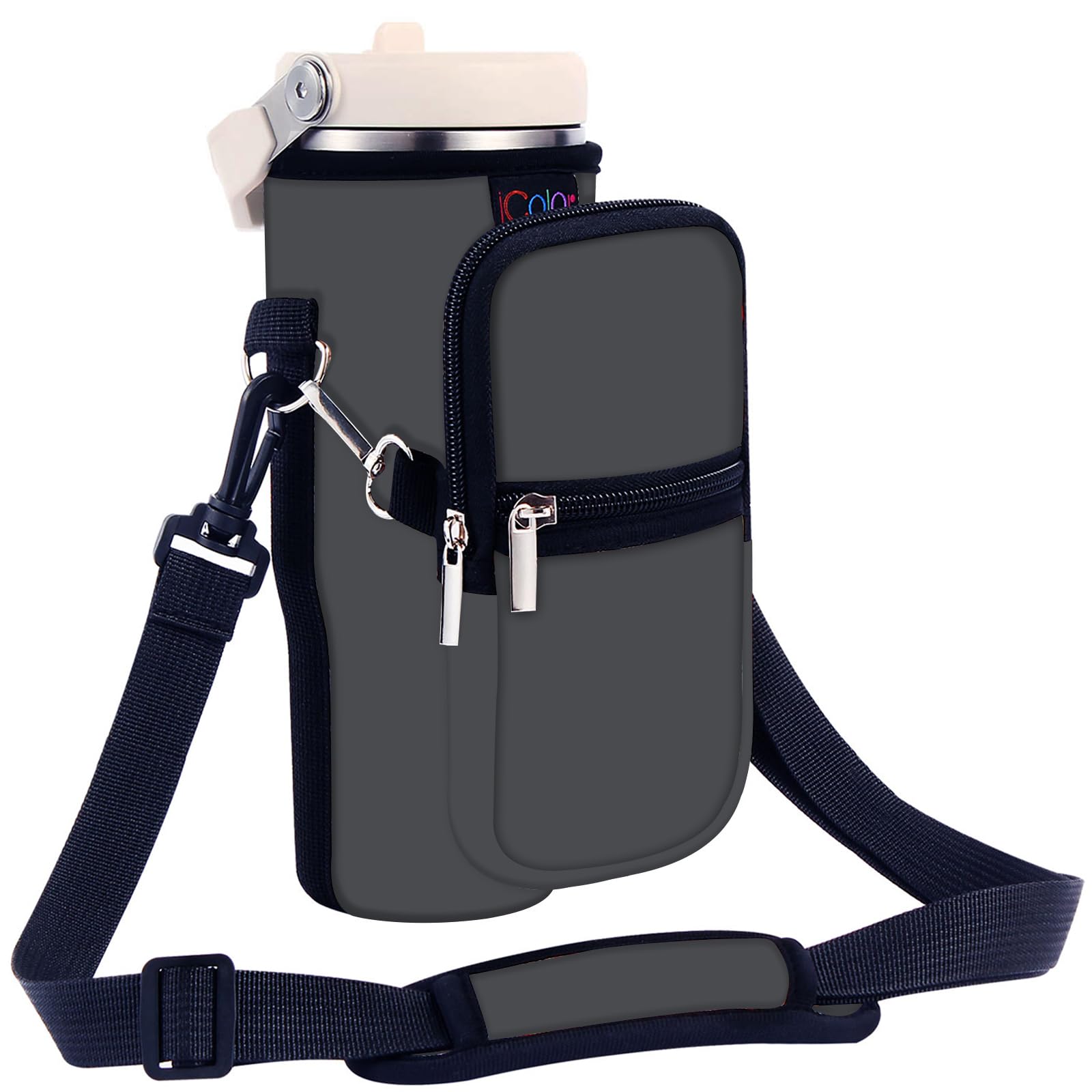 icolor Water Bottle Carrier Bag For Stanley IceFlow Flip Straw Tumbler 30oz Stanley IceFlow Mug Carrying Holder Neoprene Sleeve Stanley Cup Accessories Pouch Crossbody Sling for Travel Fitness