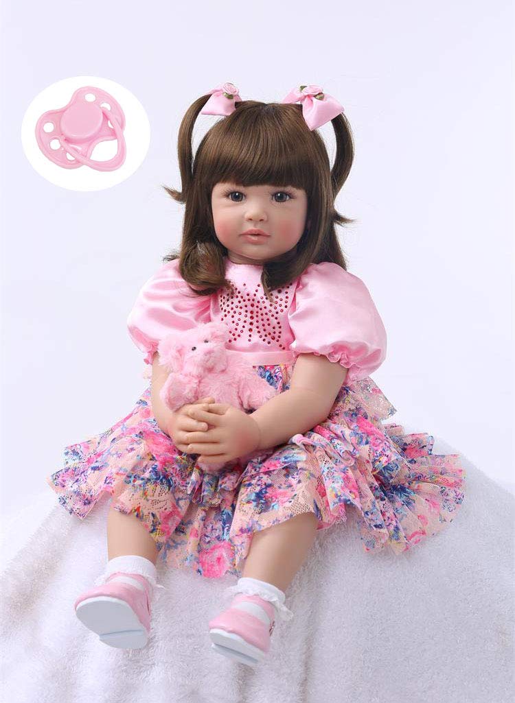 iCradle Cute 24inch 60CM Reborn Baby Doll Long Hair Girl Doll Soft Silicone Baby Real Life Baby Toddler Doll Toy for Ages 3+ (F)