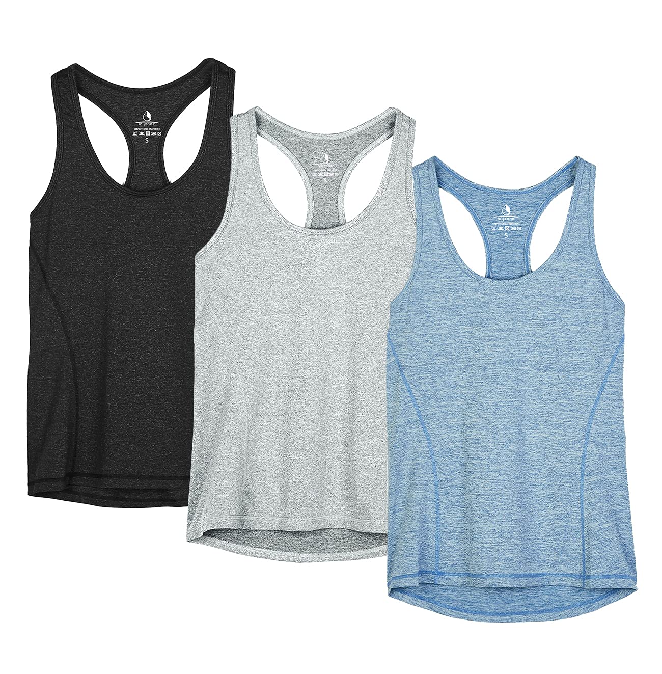 icyzone Workout Running Tank Top for Women - Racerback Yoga Tops Exercise Gym Shirts 3-Pack (M, Black/Granite/Blue)