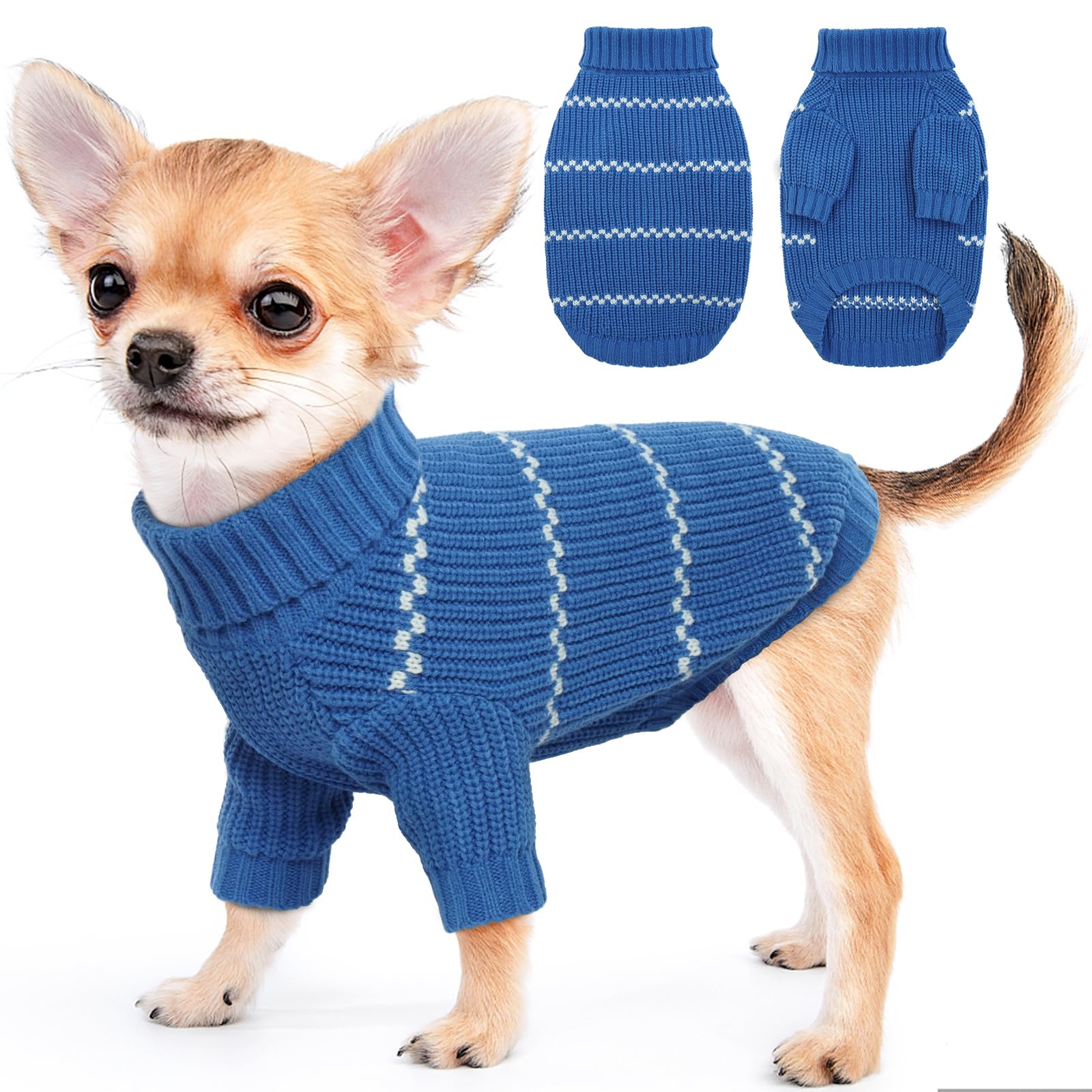 IDOMIK Dog Sweater, Thick Knitted Small Dog Pullover Sweater, Classic Striped Turtleneck Dog Sweaters for Small Medium Dogs Cats, Dog Warm Winter Clothes Coat for Cold Season,Blue,XS