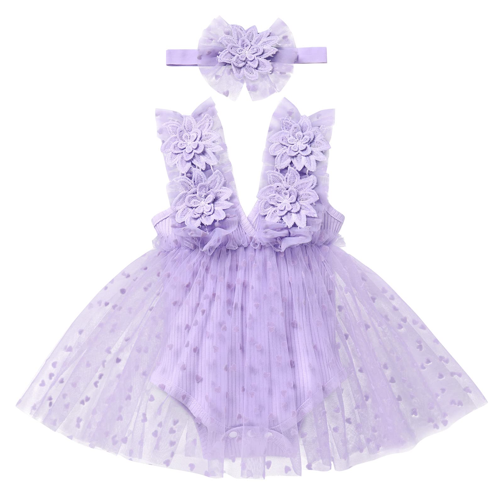 IMEKIS First Birthday Outfit Girl: Boho Romper Princess Dress Headband 1st Valentines Day Baby Cake Smash born Photography Easter for Toddler Infant Christening Photoshoot Lilac Floral 12-18 Months