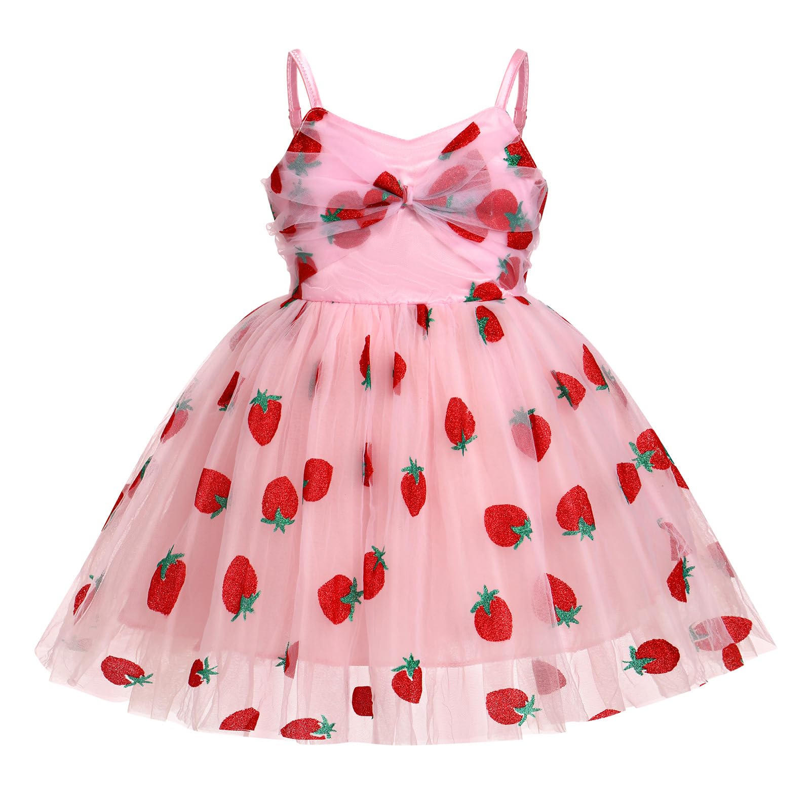 IMEKIS First Birthday Outfit Girl: Toddler Strawberry Dress Baby Berry 1st 2nd 3rd 4th 5th 6th Birthday Cake Smash Photoshoot Kids Princess Formal Tulle Party Pageant Pink Strawberry 5-6 Years