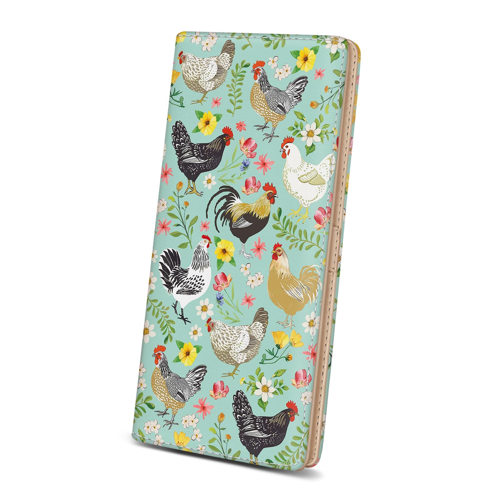 Immaturus Womens Wallet, Chickens Floral Slim Thin RFID Blocking Credit Card Wallets, Long Bifold PU Leather Card Holder Organizer, Cute Cash Clutch Billfold with Zipper Coin Pocket Ladies Girls Gift
