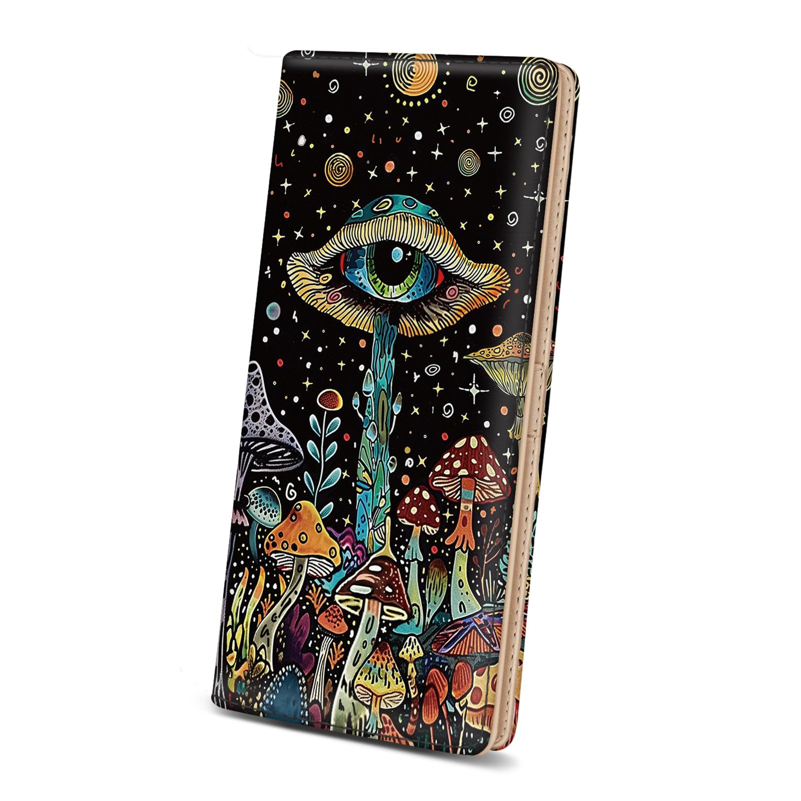 Immaturus Womens Wallet, Mushroom Eye Slim Thin RFID Blocking Credit Card Wallets, Long Bifold PU Leather Card Holder Organizer, Black Cash Clutch Billfold with Zipper Coin Pocket Ladies Girls Gift
