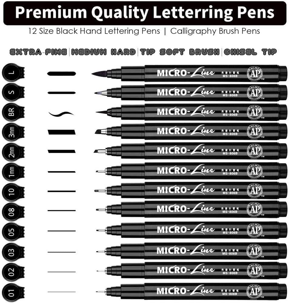 Micro-Pen Fineliner Ink Pen Brush Calligraphy Tip Nibs Micro-Line Pens Professional Quality: Pens are non-toxic, water-based and acid-free with superior archival quality long lasting vibrant pigment inks that don't smear, fade, bleed or skip. Safe & Easy to Use: Suitable for children 3 and above. They provide super smooth writing every time. Convenient Storage: Pens are stored in a convenient organizer pouch with individual spots to hold each pen, so you can always keep them neatly organized and ready for use. Includes 9 micro nib tip sizes: 0.05mm, 0.1mm, 0.2mm, 0.3mm, 0.4mm, 0.5mm, 0.6mm, 0.8mm, Brush tips(1-2mm). Exceptional professional technical writing and drawing pens for artists, writers, illustrators, students and teachers that provide consistent free-flowing ink with a smooth glide that allows you to create perfect clean lines with every use. Also great drawing or filling in adult coloring books.