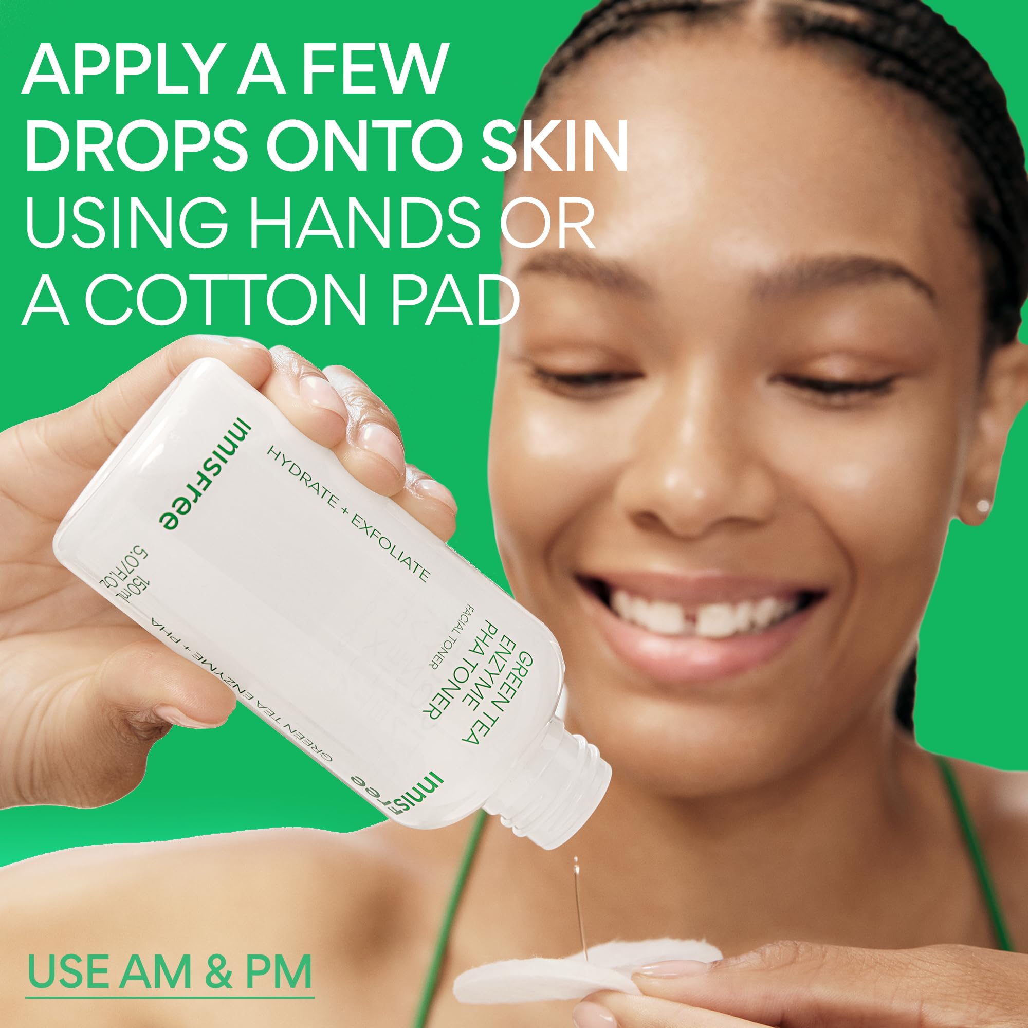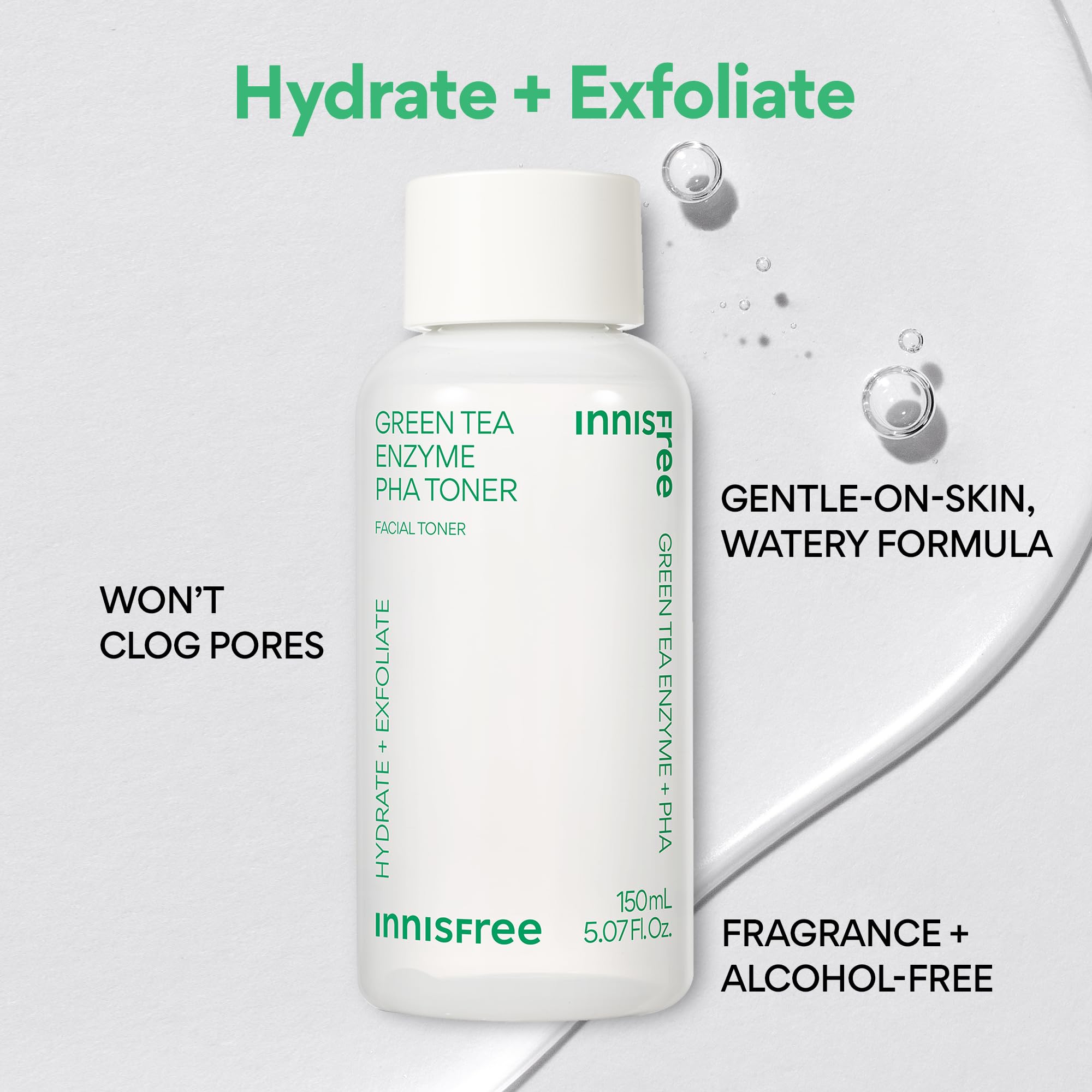 This lightweight, watery toner was designed with all skin types in mind. A blend of Green Tea Enzyme & hyaluronic acid serve up deep hydration, gentle exfoliation, and visibly improved skin texture -- made for everyday use! Formulated without fragrance and alcohol. Certified Vegan. Clinical Results: After 1 Use: - 95% agreed they noticed a visible difference in their skin.* After 4 Weeks of Use: - 95% agreed their skin felt softer and hydrated.* - 100% agreed their skin texture felt smoother.* Noncomedogenic. Dermatologically tested. Irritation tested on sensitive skin. *Based on the self-assessment survey portion of a 4-week clinical study on 20 women ages 19 to 40.