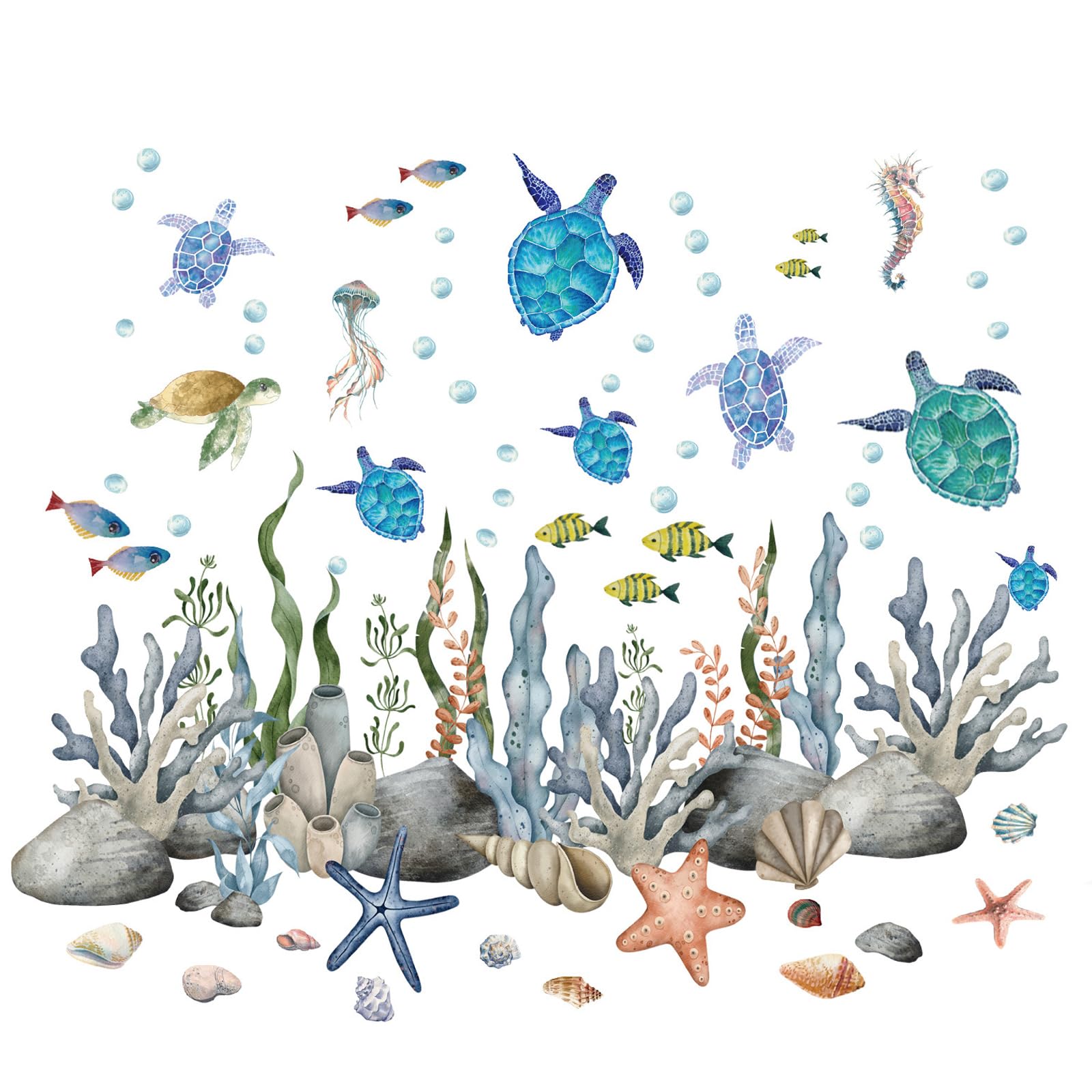 inodiref Wall Sticker Sea Turtles Wall Sticker Decoration Under the Sea 90 x 57 cm for Children's Room Bedroom Classroom