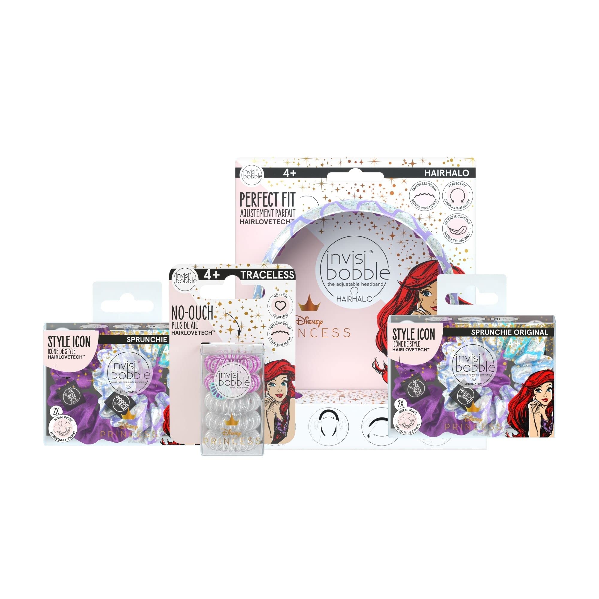 invisibobble Disney Princess Ariel 10-PIece Gift Set - Spiral Hair Tie, HairHalo Headband, Sprunchie Hair Accessories for Girls